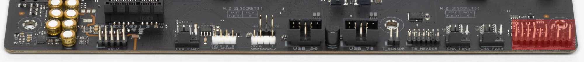 - 2 порта USB 3.2 Gen2: оба реализованы через B760 и представлены: один внутренним портом Type-C (для подключения к соответствующему разъему на передней панели корпуса); второй – портом Type-A (красного цвета) на задней панели;