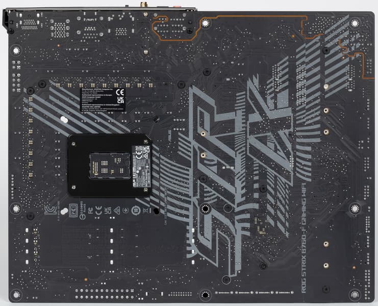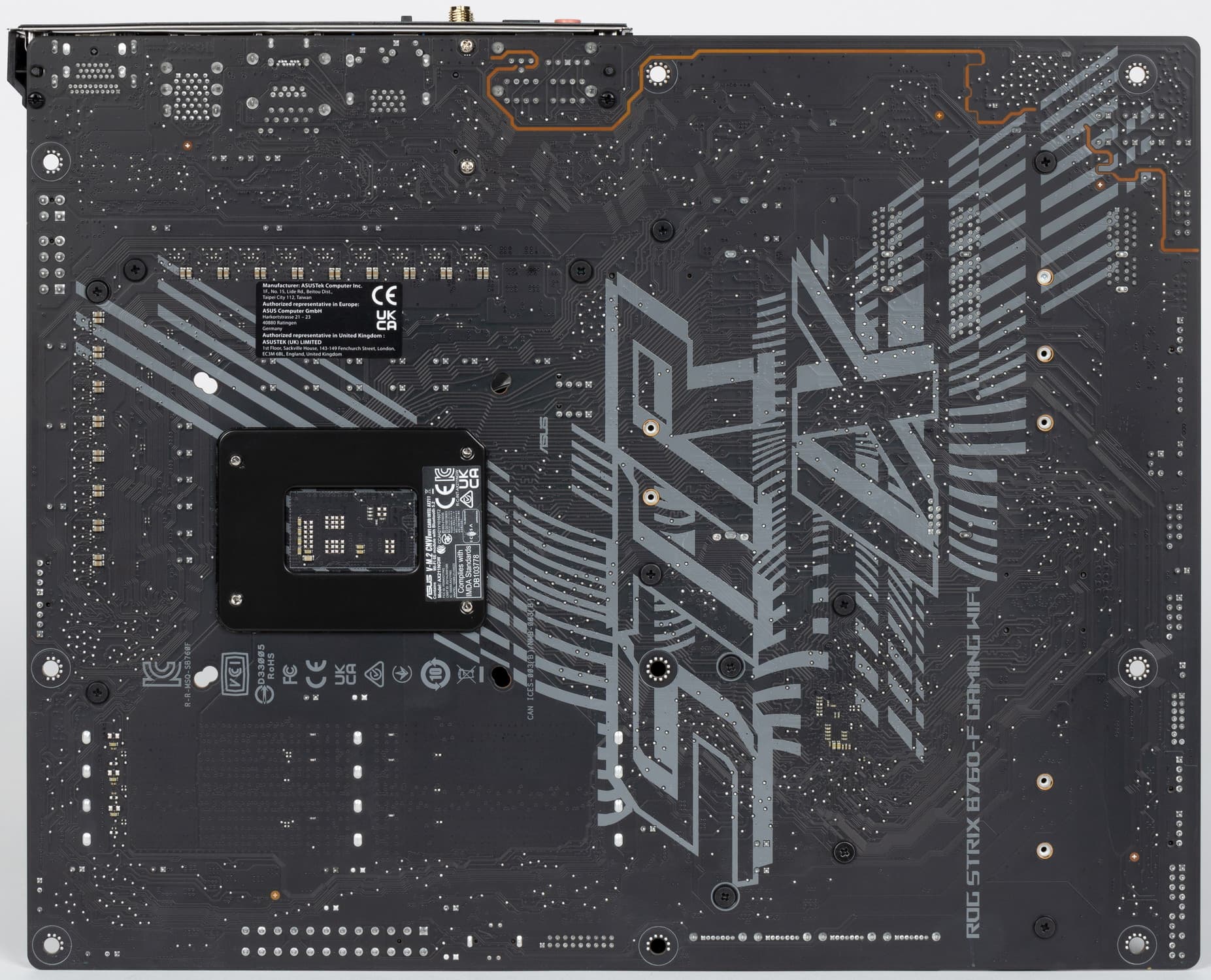 Форм-фактор Mini-ITX имеет размеры 170x170 мм, Micro-ATX до 244×244 мм, ATX до 305×244 мм, а E-ATX — до 305×330 мм. Материнская плата Asus ROG Strix B760-F Gaming WiFi выполнена в форм-факторе ATX, имеет размеры 305×244 мм, и на ней имеются 9 монтажных отверстий для установки в корпус.