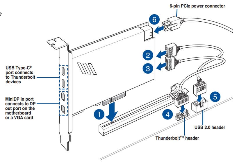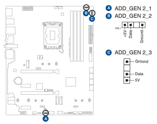 | Прочие внутренние элементы | 24-контактный разъем питания ATX 1 8-контактный разъем питания EPS12V 1 4-контактный разъем питания EPS12V 1 слот M.2 (E-key), занят адаптером беспроводных сетей 1 разъем для подключения порта USB 3.2 Gen2 Type-C 1 разъем для подключения 2 портов USB 3.2 Gen1 2 разъема для подключения 4 портов USB 2.0 7 разъемов для подключения 4-контактных вентиляторов и помп ЖСО 4 разъема для подключения адаптеров подсветки (1 разъем неадресуемой RGB-ленты, 3 разъема адресуемой ARGB-ленты) 2 разъема для подключения адаптера управления с передней панели корпуса 1 разъем для внешнего термодатчика 1 разъем для подключения дискретного Thunderbolt |