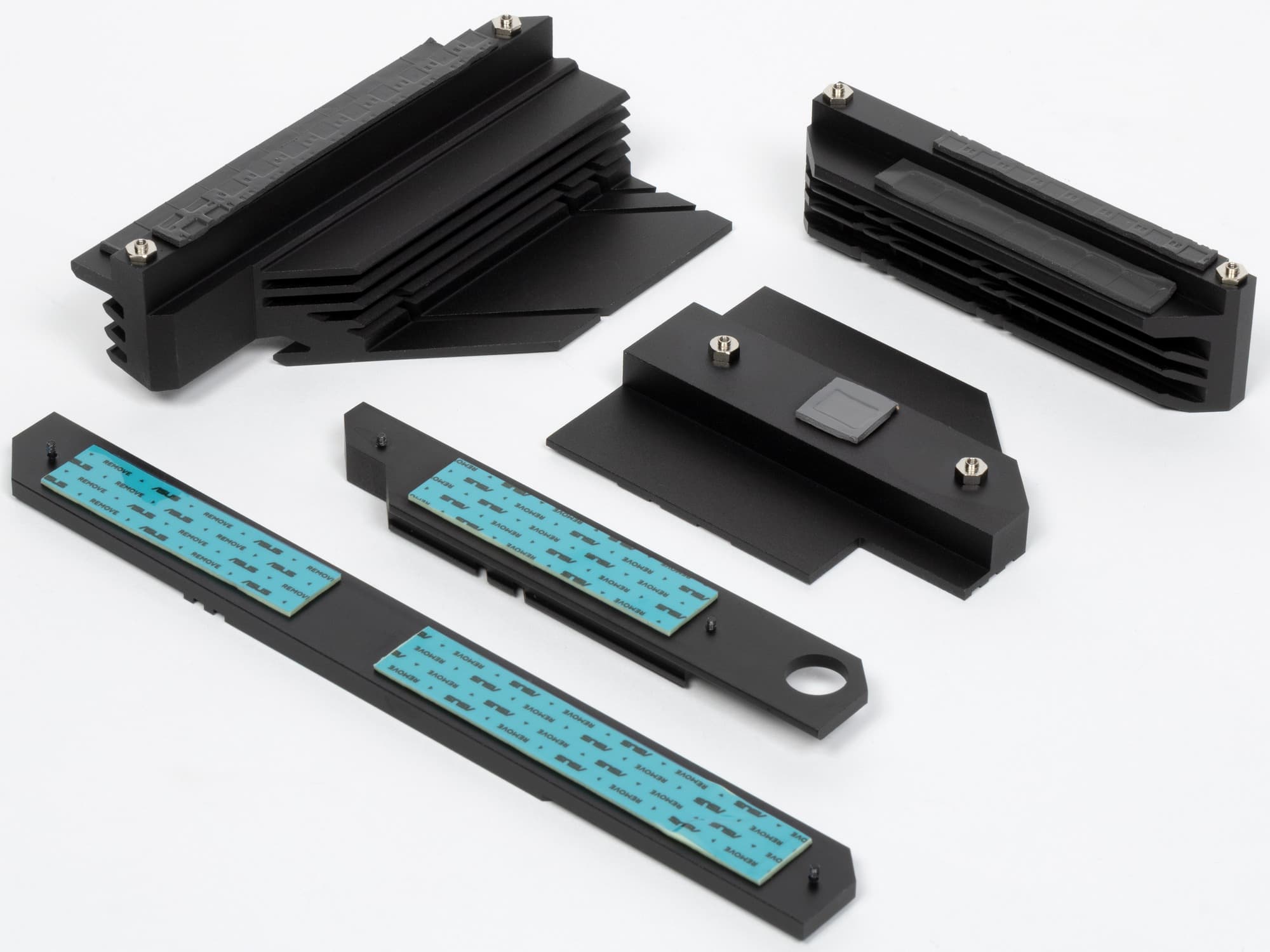Все слоты М.2 оснащены радиаторами, при этом у M.2_1 – свой отдельный радиатор, а слоты М.2_2 и М.2_3 имеют общий радиатор. При этом системный чипсет охлаждается собственным радиатором, не объединенным с охлаждением для М.2 слотов.