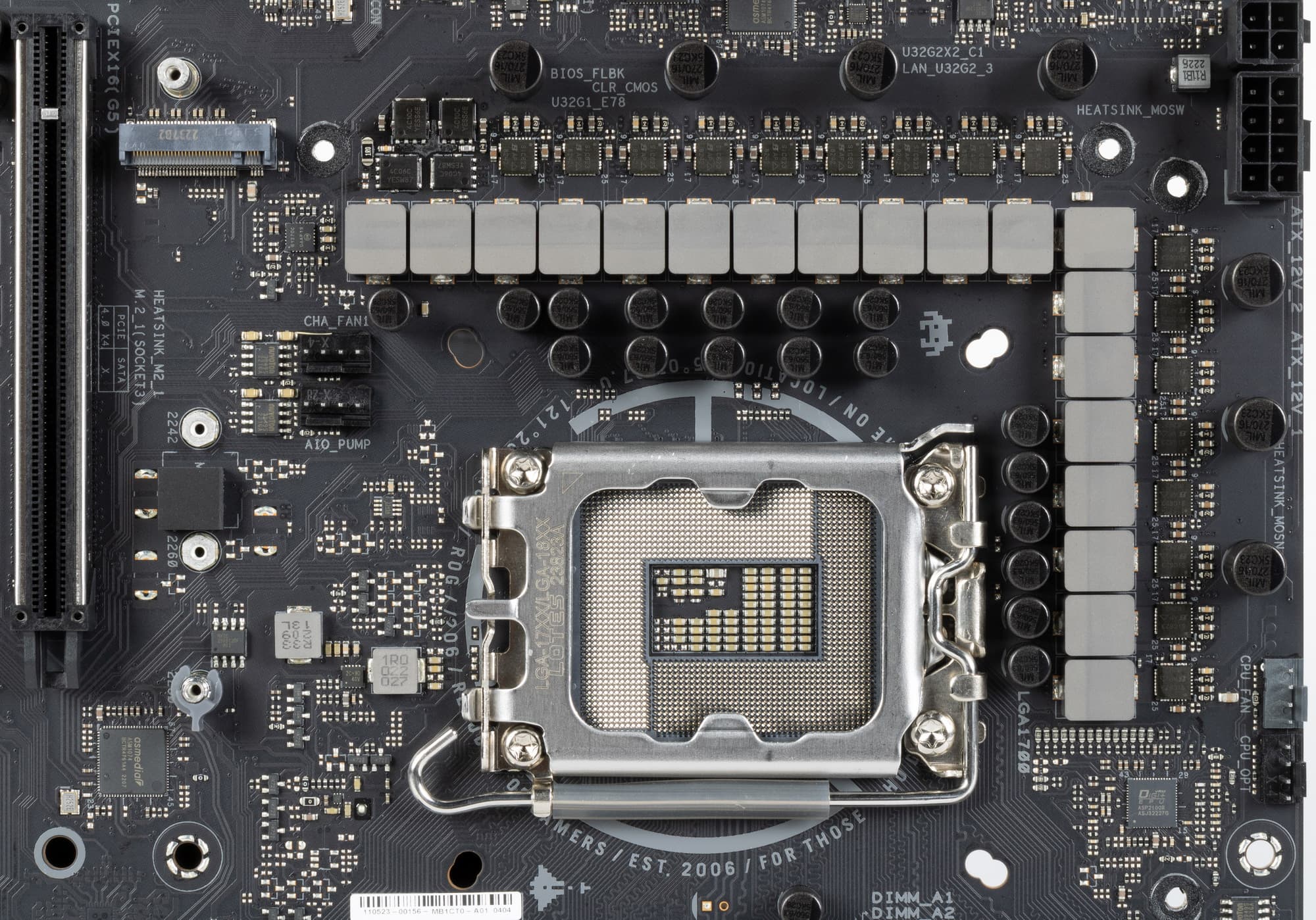 Asus ROG Strix B760-F Gaming WiFi поддерживает процессоры Intel Core 12/13-го поколений, выполненные под разъем (сокет) LGA1700.