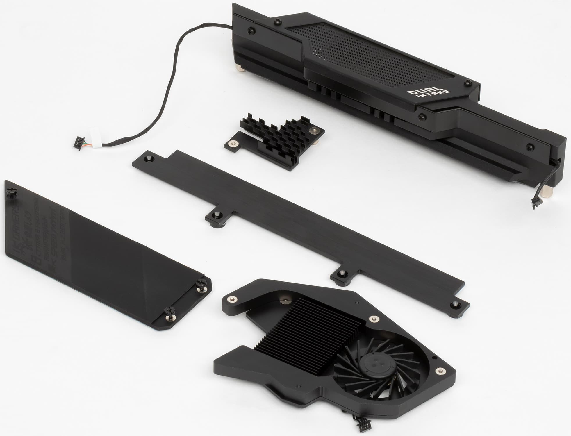 Для двух модулей M.2 (2_1 и 2_2), как я уже выше отмечал, есть свой общий радиатор с термоинтерфейсами. Он крепится самостоятельно и не принимает участие в общей схеме охлаждения.