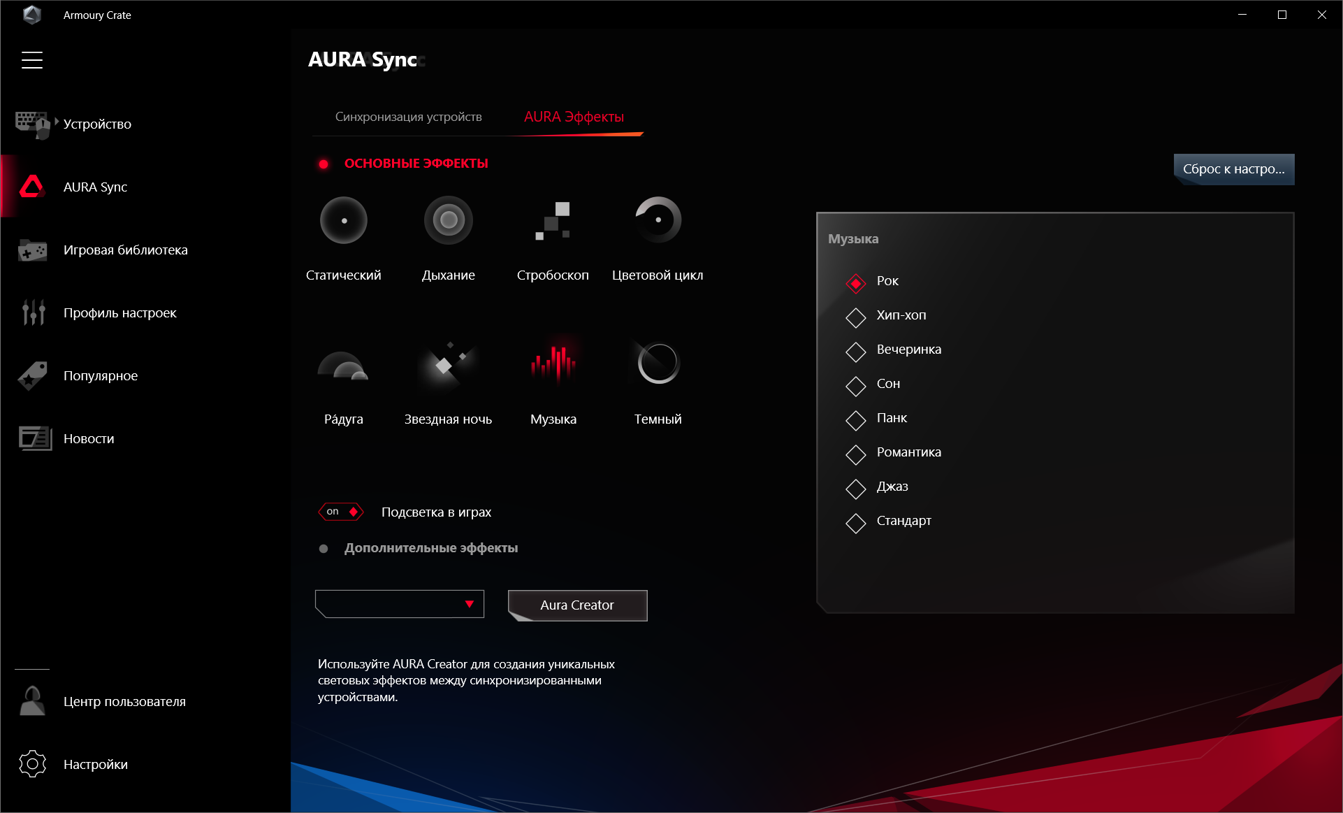 Также можно загрузить Aura Creator и с его помощью создать свои сценарии работы подсветки.