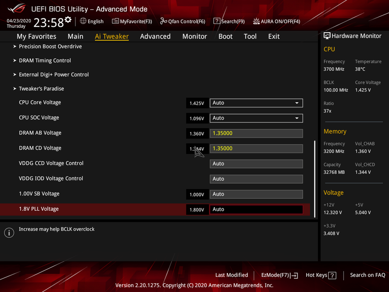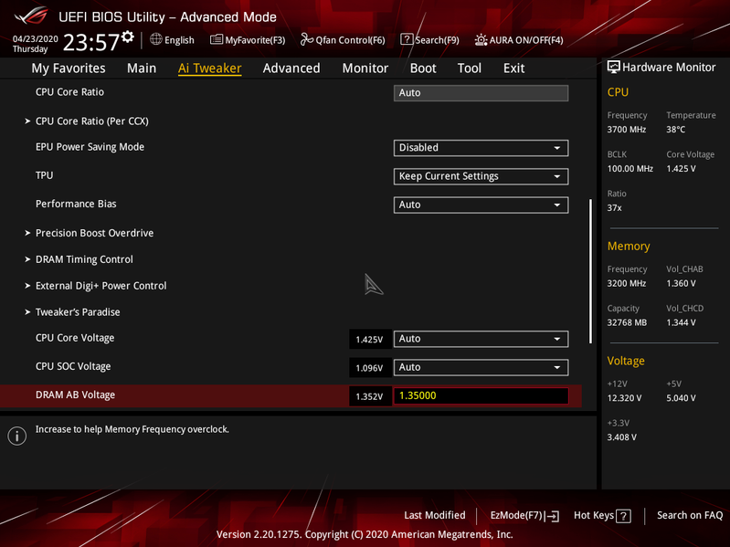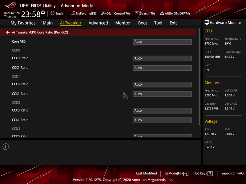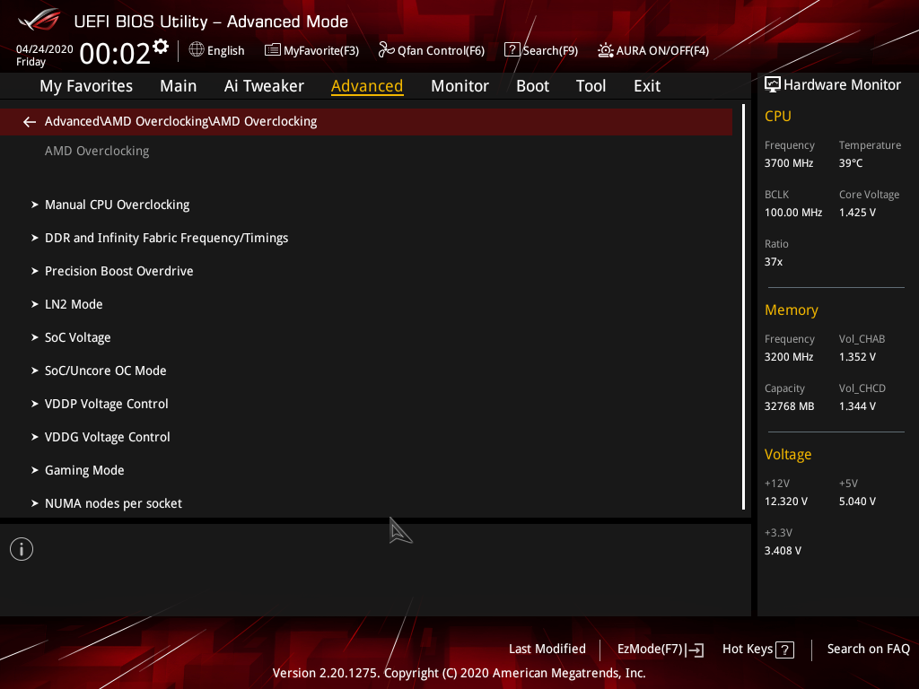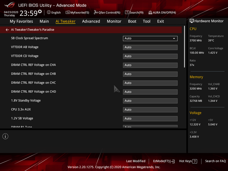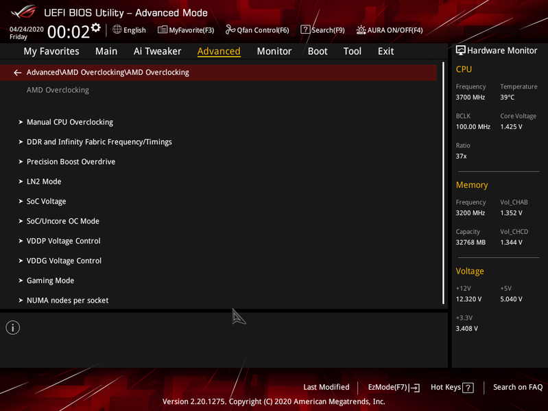 Для разгона имеется набор стандартных опции в рамках того, что поддерживают процессоры Ryzen Threadripper и оперативная память DDR4. Помним про наличие внешнего тактового генератора, поэтому можно гибко менять и частоту базовой шины. Опций очень много, как и положено в линейке ROG, однако мы знаем, что для «тредрипперов 3ххх» львиная доля этих настроек — бесполезна, ибо процессор сам по себе уже работает на почти предельных частотах (с помощью AMD Precision Boost2). Ну разве что с использованием сверхжестких методов охлаждения...