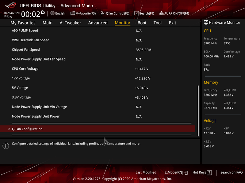 Раздел мониторинга дает возможность не только лицезреть температуры и обороты вентиляторов, но и управлять последними через панель Qfan Control.