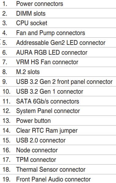 | Прочие внутренние элементы | 24-контактный разъем питания ATX 2 8-контактных разъема питания EPS12V 1 разъем для подключения порта USB 3.2 Gen2 Type-C 2 разъема для подключения 4 портов USB 3.2 Gen1 2 разъема для подключения 4 портов USB 2.0 7 разъемов для подключения 4-контактных вентиляторов (поддержка помп ЖСО) 2 разъема для подключения неадресуемой RGB-ленты 2 разъема для подключения адресуемой ARGB-ленты 1 разъем аудио для передней панели корпуса 1 разъем NODE 1 разъем TPM 2 разъема для подключения управления с передней панели корпуса 1 разъем для термодатчика 1 разъем сброса CMOS 1 кнопка включения питания Power |