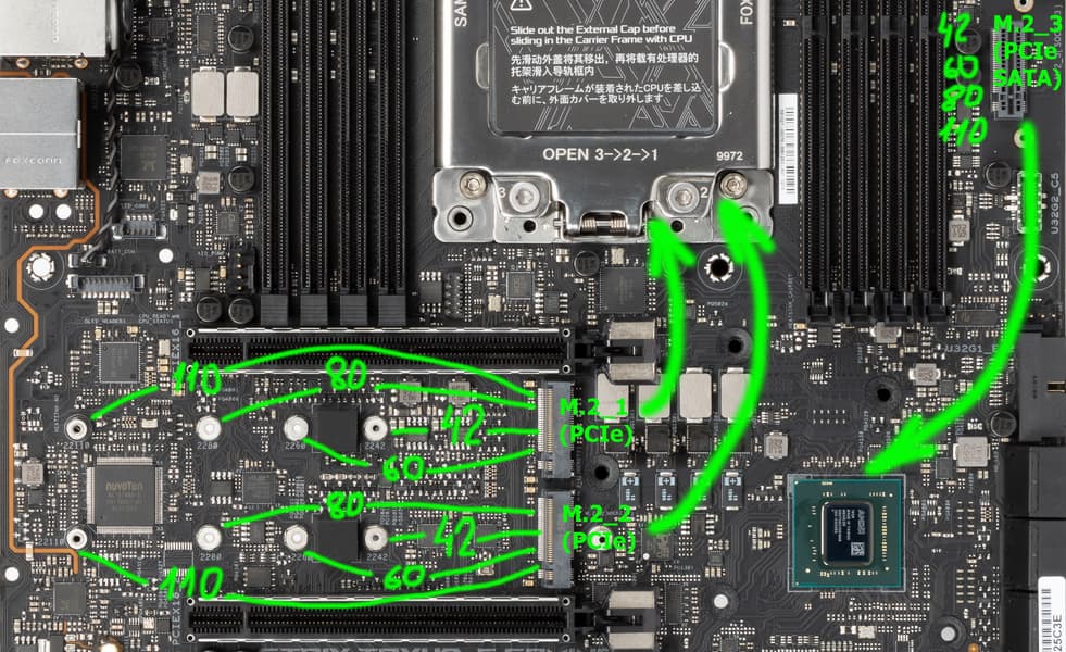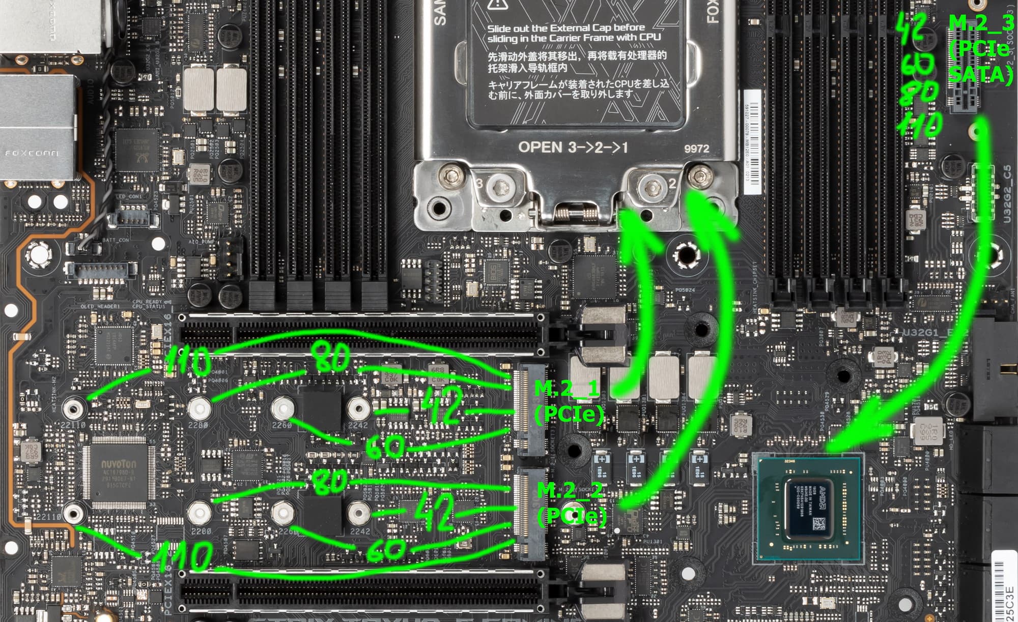 Все три этих слота поддерживают модули размерами до 22110 включительно.