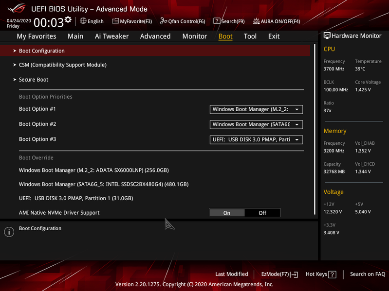 Следует еще сказать про утилиту Armoury Crate, которая является этаким менеджером-надзирателем за всем ПО Asus, следя за своевременным обновлением, управляет подсветкой (Aura Sync ныне интегрирована в Armoury Crate) ну и новыми возможностями, а также отвечает за синхронизацию работы всех устройств Asus из серии ROG. Ее установщик находится в UEFI BIOS. По умолчанию настройка установки этой программы включена, поэтому не стоит удивляться, если после загрузки Windows вам будет задан вопрос о том — хотите вы установить Armoury Crate или нет. Даже если откажитесь, то Asus Live Update все равно будет принудительно установлен, и периодически будет оповещать о надобности обновлений. Удалить его невозможно, т. к. при следующей перезагрузке программа снова будет установлена из UEFI. Так что, если кому сие не нужно — не забудьте в настройках BIOS выключить эту утилиту.