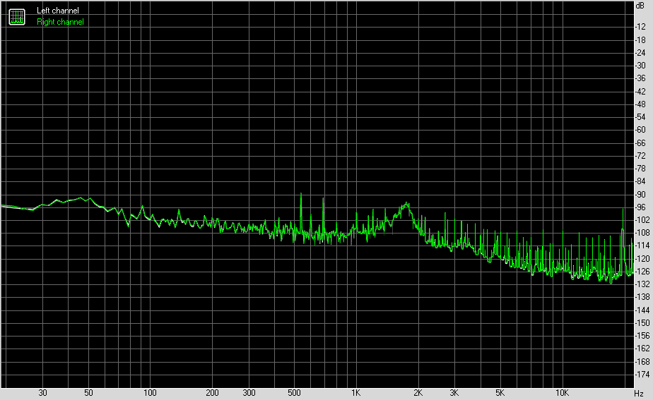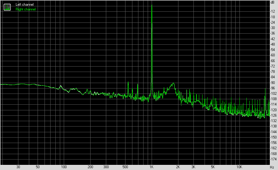 Для тестирования выходного звукового тракта, предназначенного для подключения наушников или внешней акустики, мы использовали внешнюю звуковую карту Creative E-MU 0202 USB в сочетании с утилитой RightMark Audio Analyzer 6.4.5. Тестирование проводилось для режима стерео, 24-бит/44,1 кГц. Во время тестирования ИБП тестового ПК физически отключался от электросети и работал на аккумуляторе.