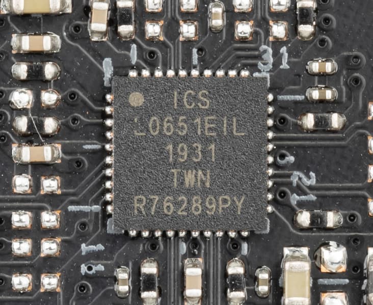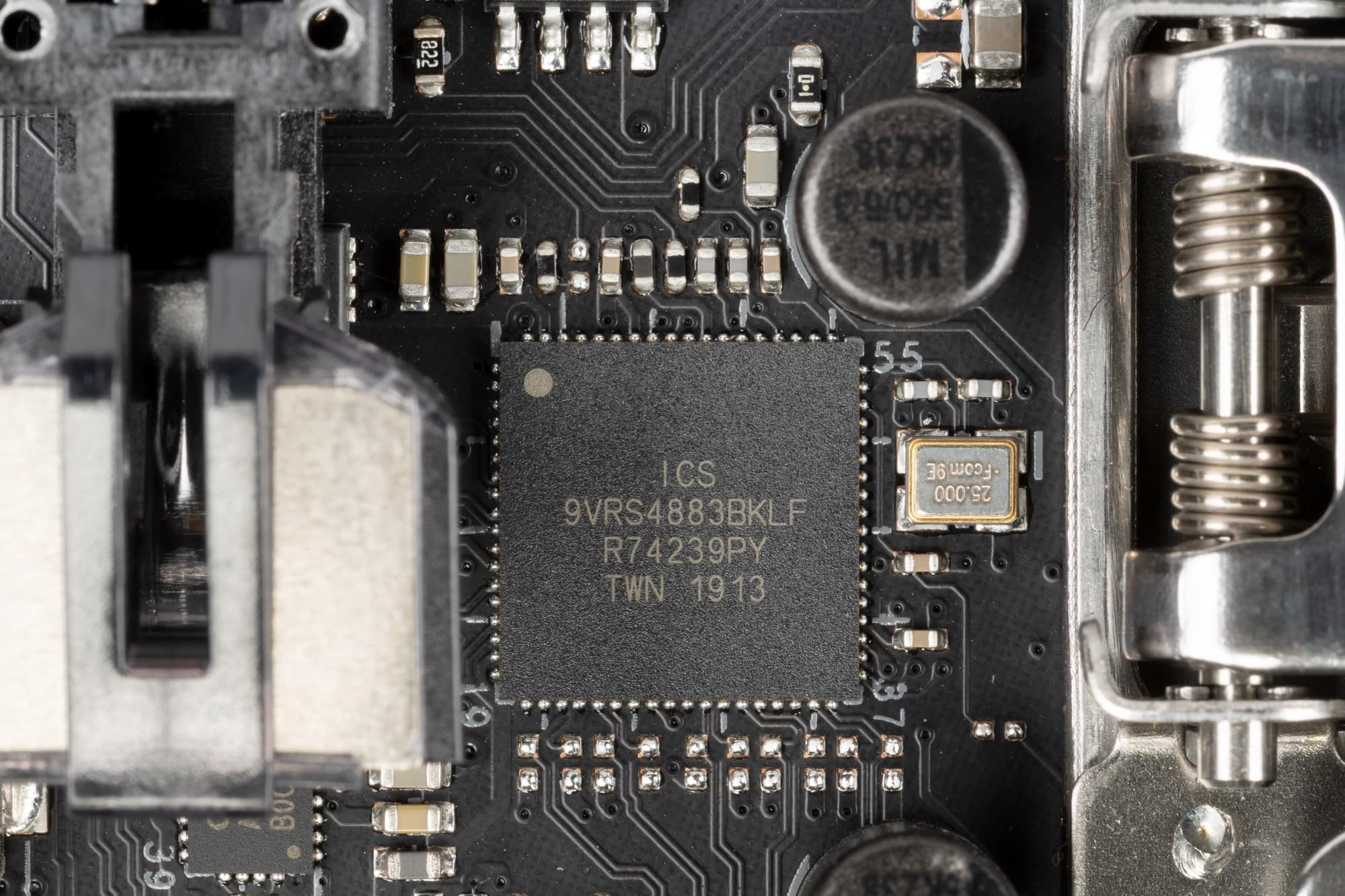 Зато есть внешний генератор частот для поддержки разгона шины PCI-e 4.0 — ICS 9VRS4883BKLF (у самого Asus применение такого генератора носит имя Asus Pro Clock).