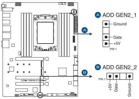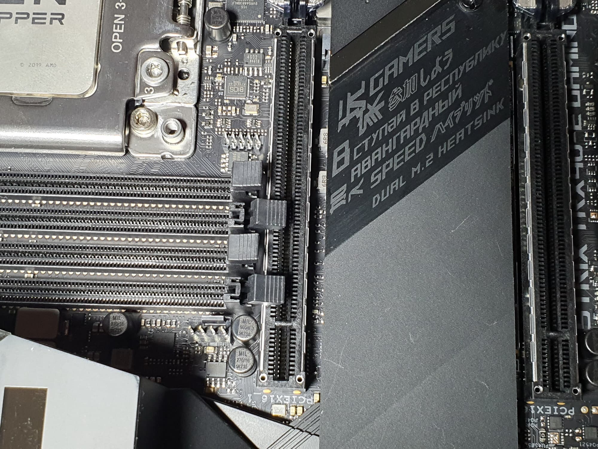 А что касается интерфейсов, то горизонтально расположенные M.2_1 и M.2_2 получают данные непосредственно от процессора и поддерживаю модули только с PCI-e интерфейсом. А вертикальный M.2_3 поддерживает модули PCI-e и SATA, и управляется чипсетом TRX40.