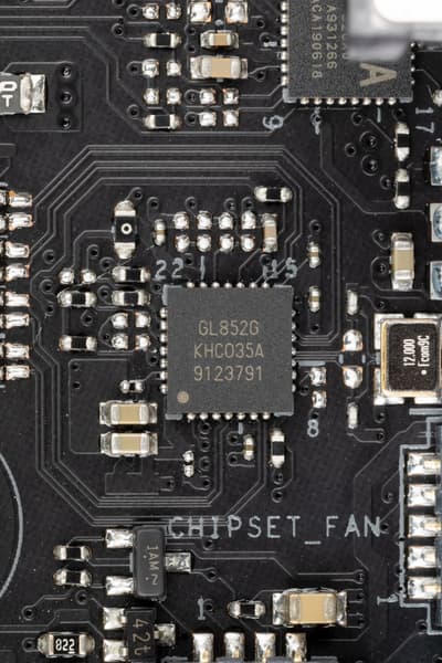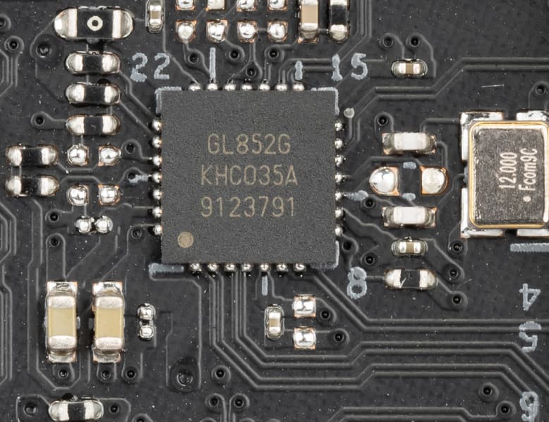 Аудиокодеки/канал Realtek ALC4050H и Realtek ALC1220 для связи с чипсетом используют порты USB, еще 2 линии USB 2.0 потрачены на контроллеры GL852G от Genesys Logic (положенные штатно 4 USB 2.0 также израсходованы).