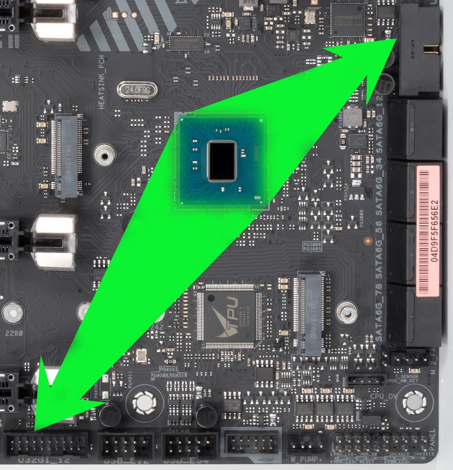 Владельцам i9-10xxxX и i7/i9-9xxxX/79xxX можно смело ставить пару видеокарт в первый и третий (по общему счету) слоты, каждая получит по-прежнему 16 линий PCIe. И лишь имеющие 28 линий PCIe процессоры второй PCIe x16 (третий по общему счету) слот переведут в х8, и тандем видеокарт получит не х16+х16, а х16+х8.