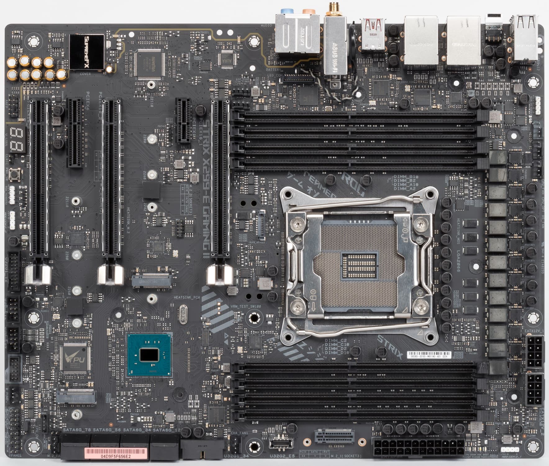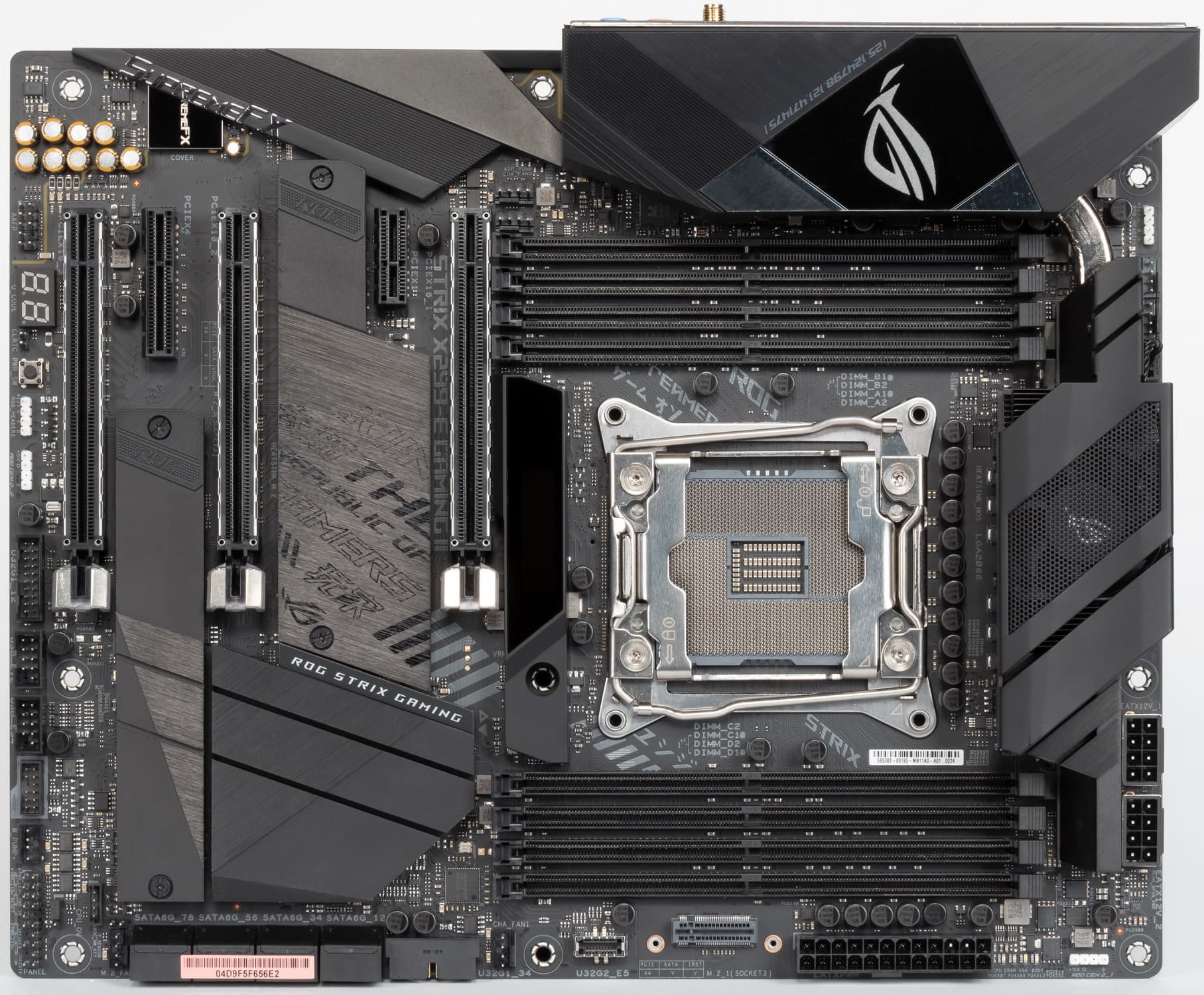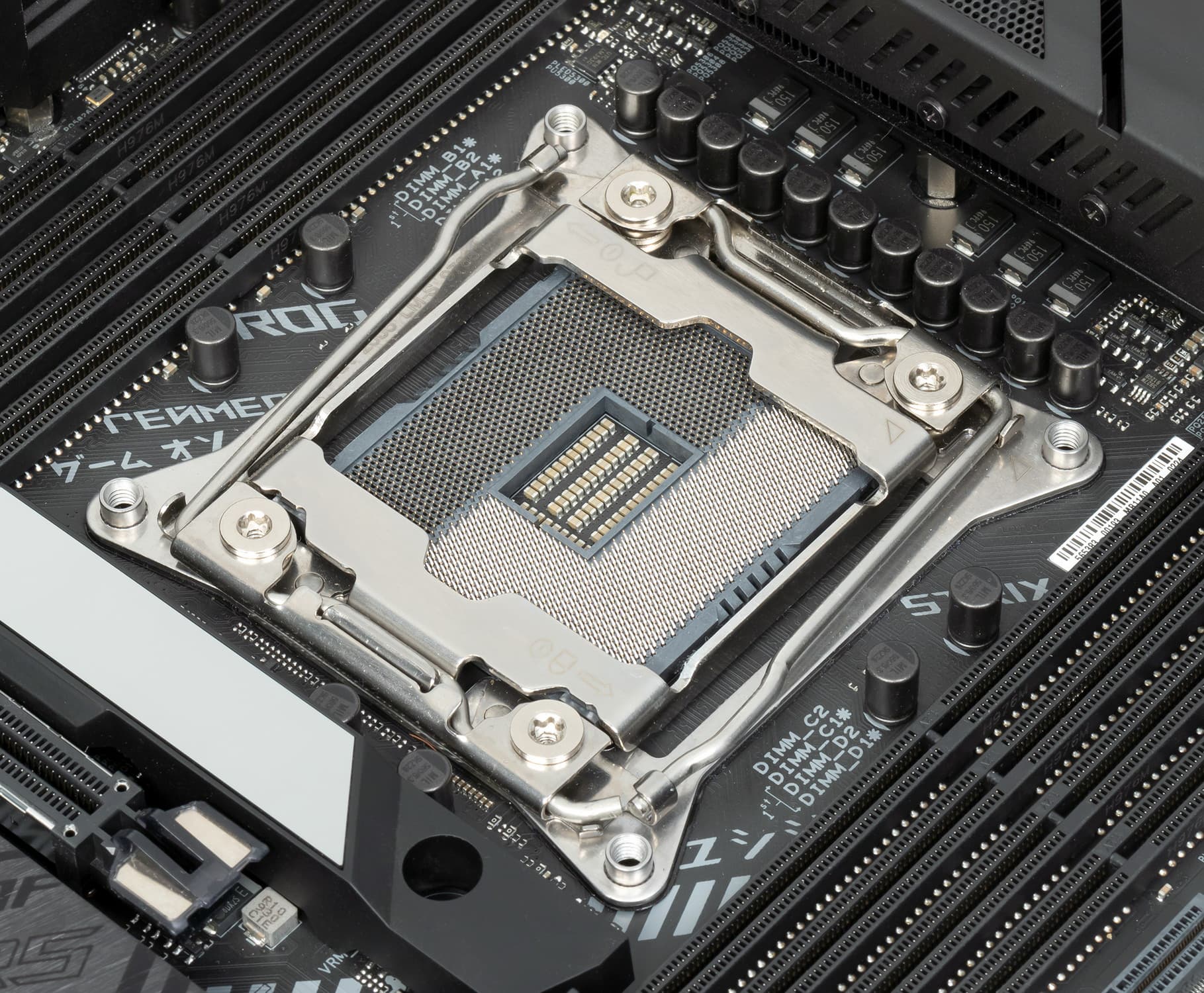 Еще раз надо напомнить, что ROG Strix X299-E Gaming II поддерживает процессоры Intel Core X 7-го, 9-го и 10-го поколений (SkyLake-X, CascadeLake-X), устанавливаемые в сокет LGA 2066.