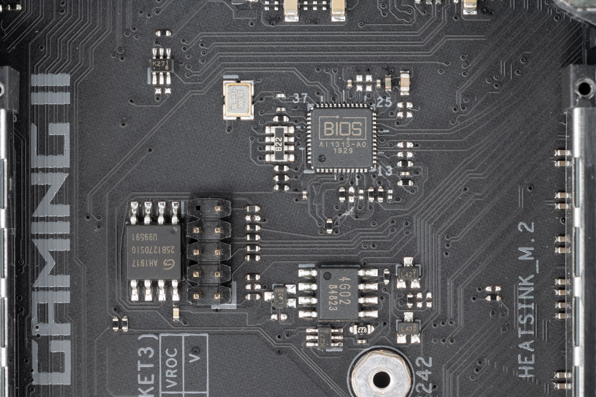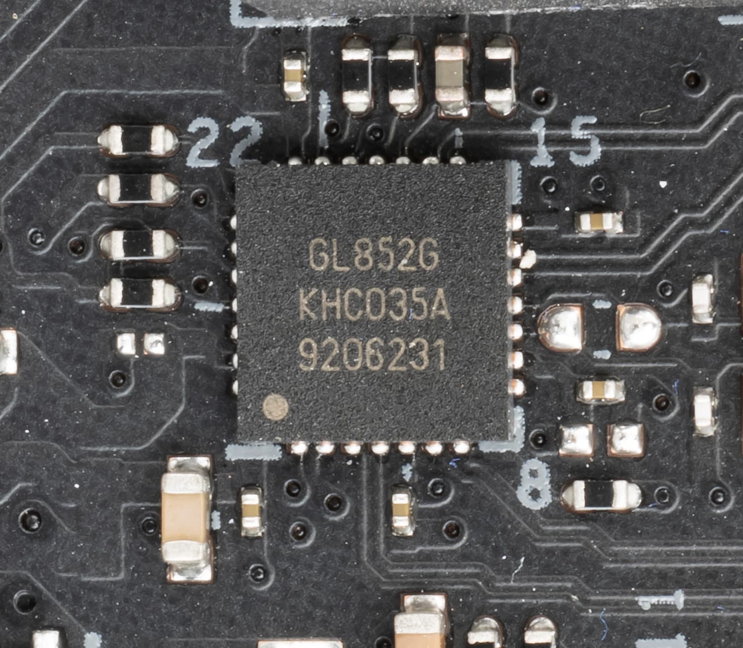 У данной платы распределение линий PCIe между слотами в случае использования более одной видеокарты для разных процессоров, — достаточно простое, поэтому мультиплексоры ASM1480 от ASMedia востребованы в малом количестве.
