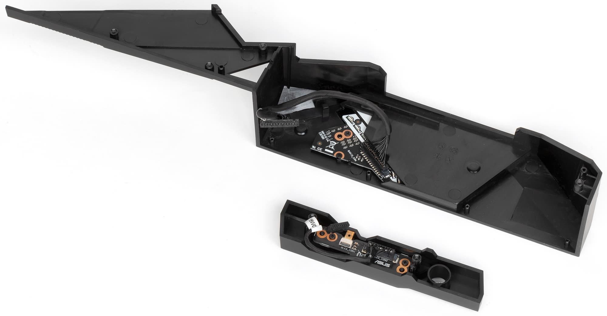 Топовые платы ROG всегда имеют красивую подсветку с особым дизайном (см. видеоролик выше): светодиоды образуют яркие эффекты на кожухе, покрывающем задний блок с разъемами, а также бывают подсвечены радиатор чипсета и иногда кожух над блоком аудио. В данном случае подсветка имеется только на основном кожухе. Плюс имеется OLED экранчик (о нем упоминал уже ранее, а его настройки будут рассмотрены ниже). Так же мы помним про 4 разъема для подключения внешней подсветки, и всем этим можно управлять через программу Armoury Crate.