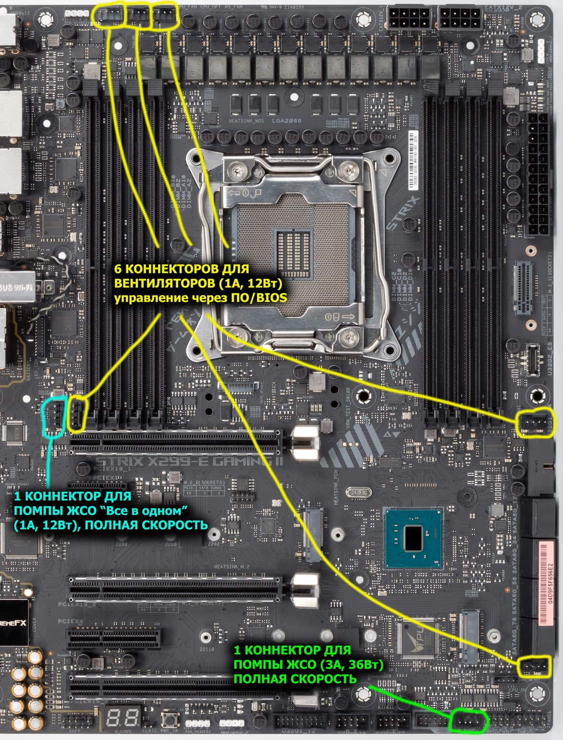 - Слот PCIe x16_1 всегда имеет 16 линий (i9-10xxxX +16=16, i9/i7-9xxxX/79xxX +16=16, i7-78xxX +16=16);