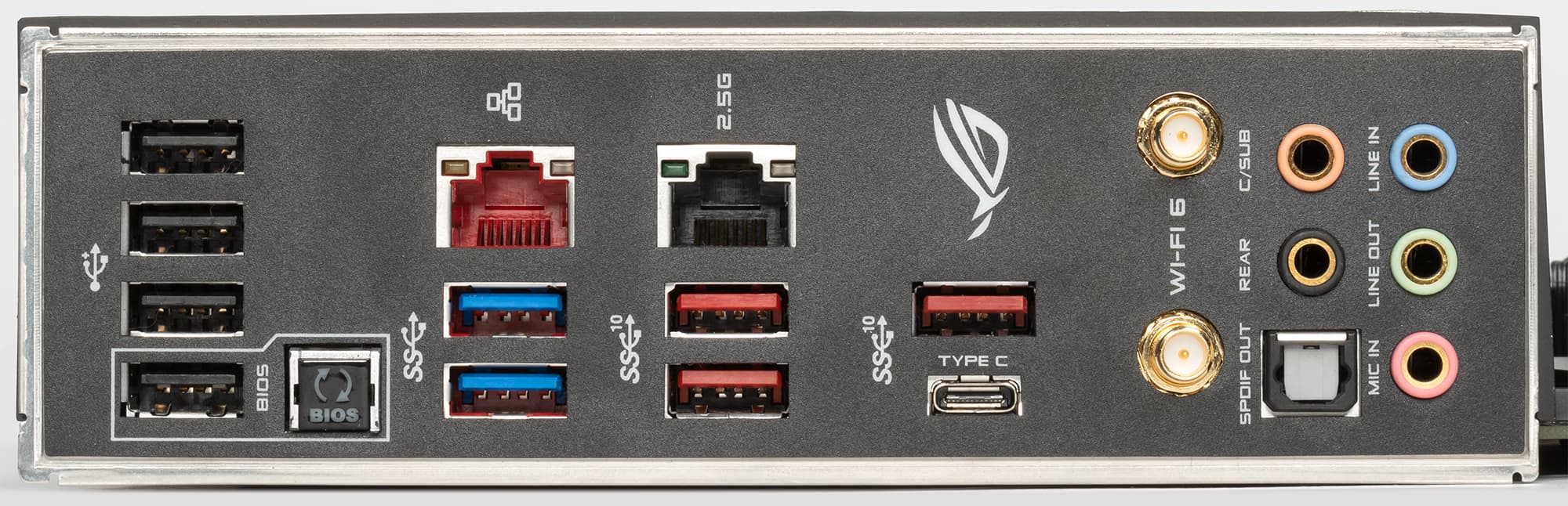 | Разъемы на задней панели | 1 × USB 3.2 Gen2 (Type-C) 3 × USB 3.2 Gen2 (Type-A) 2 × USB 3.2 Gen1 (Type-A) 4 × USB 2.0 (Type-A) 2 × RJ-45 5 аудиоразъемов типа миниджек 1 × S/PDIF (оптический, выход) 2 антенных разъема кнопка перепрошивки BIOS — Flashback |