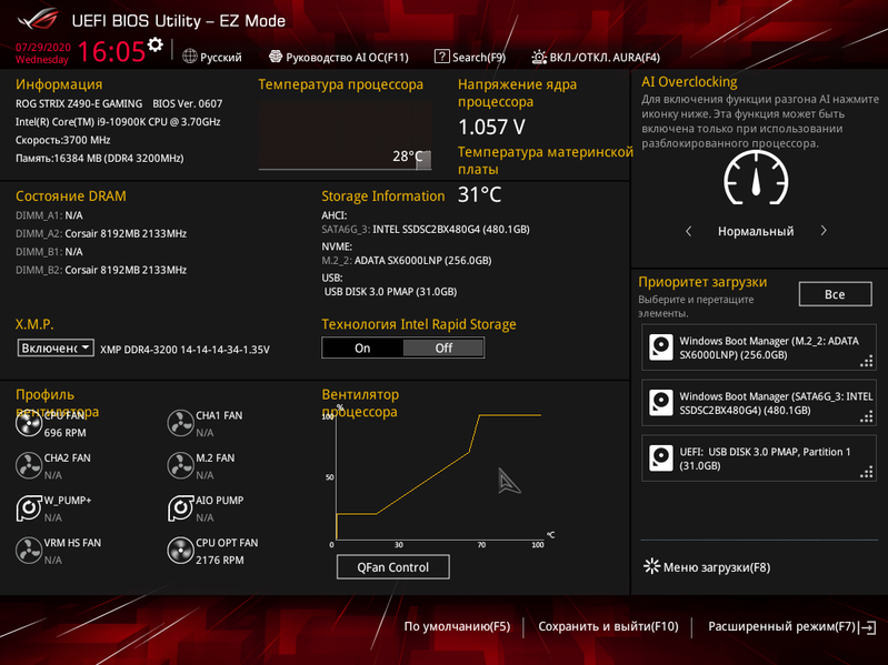 Формально имеется поддержка памяти до 2933 МГц, однако всем хорошо известно, и производители материнских плат это активно рекламируют: через XMP-профили можно использовать частоты до 4000 и выше МГц. В частности данная плата поддерживает частоты до 4600+ МГц.