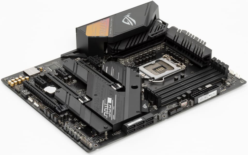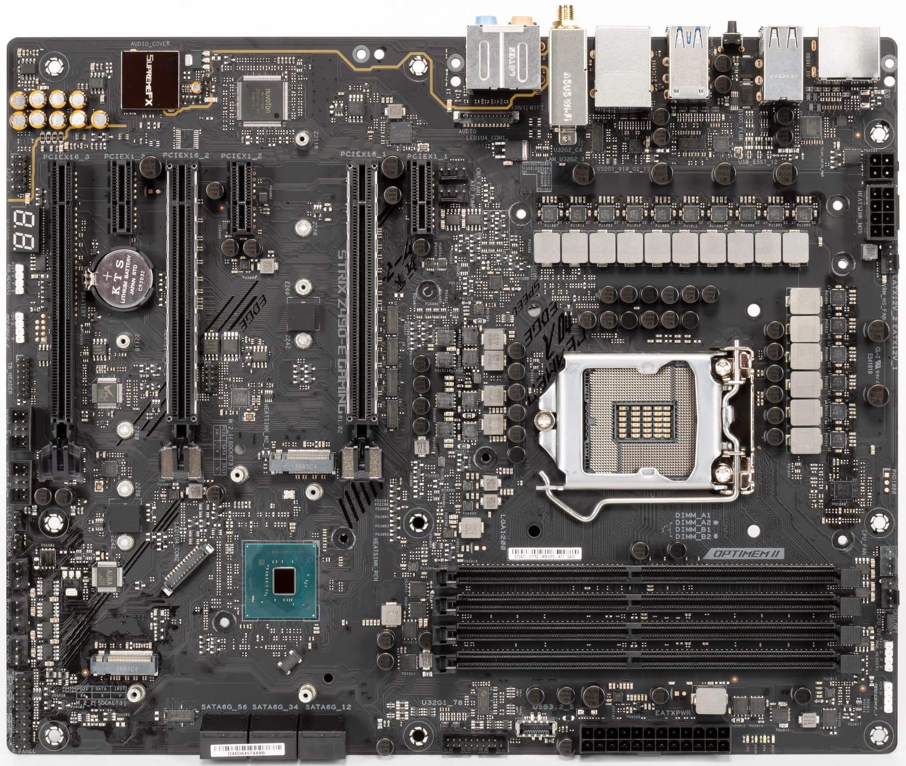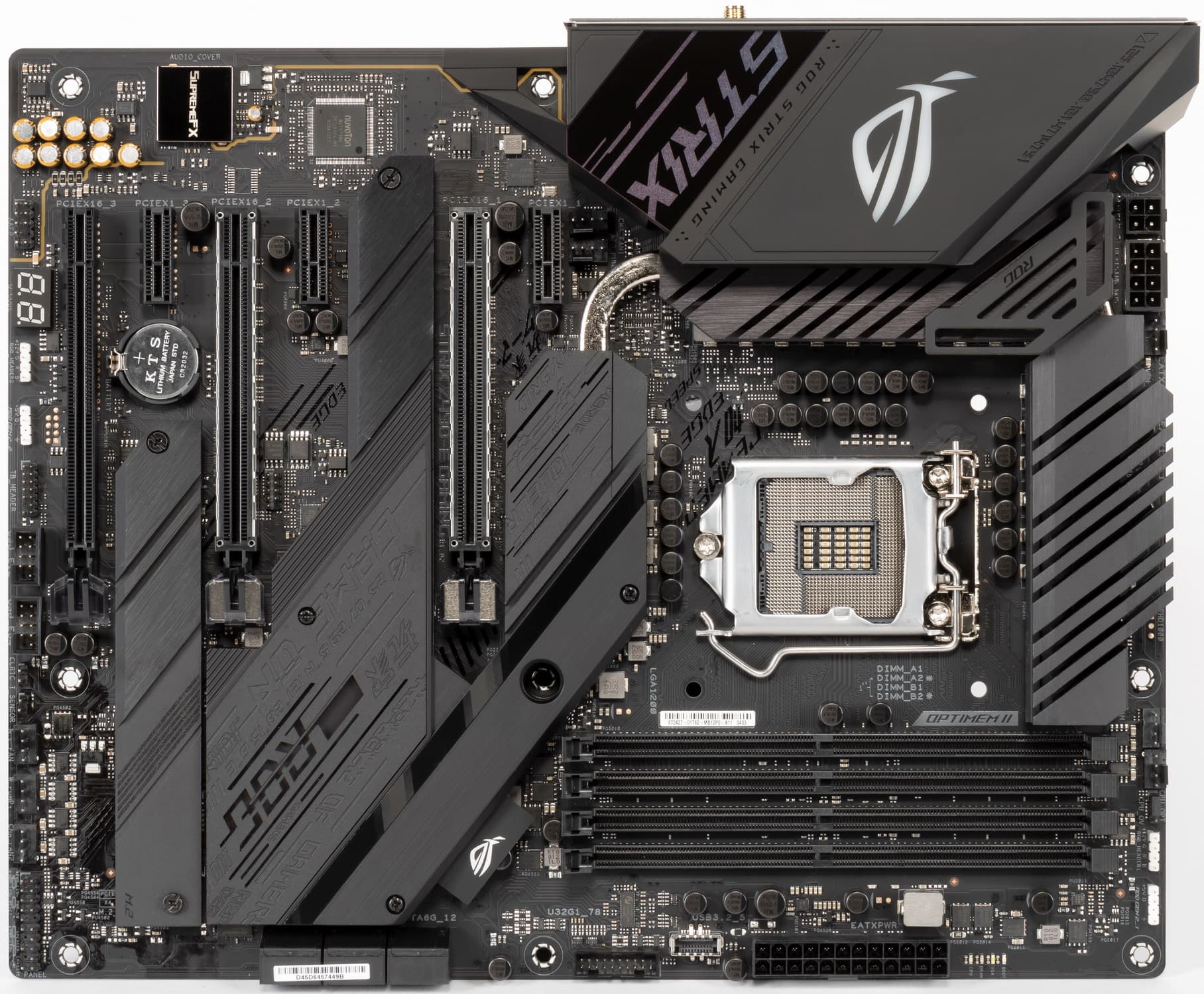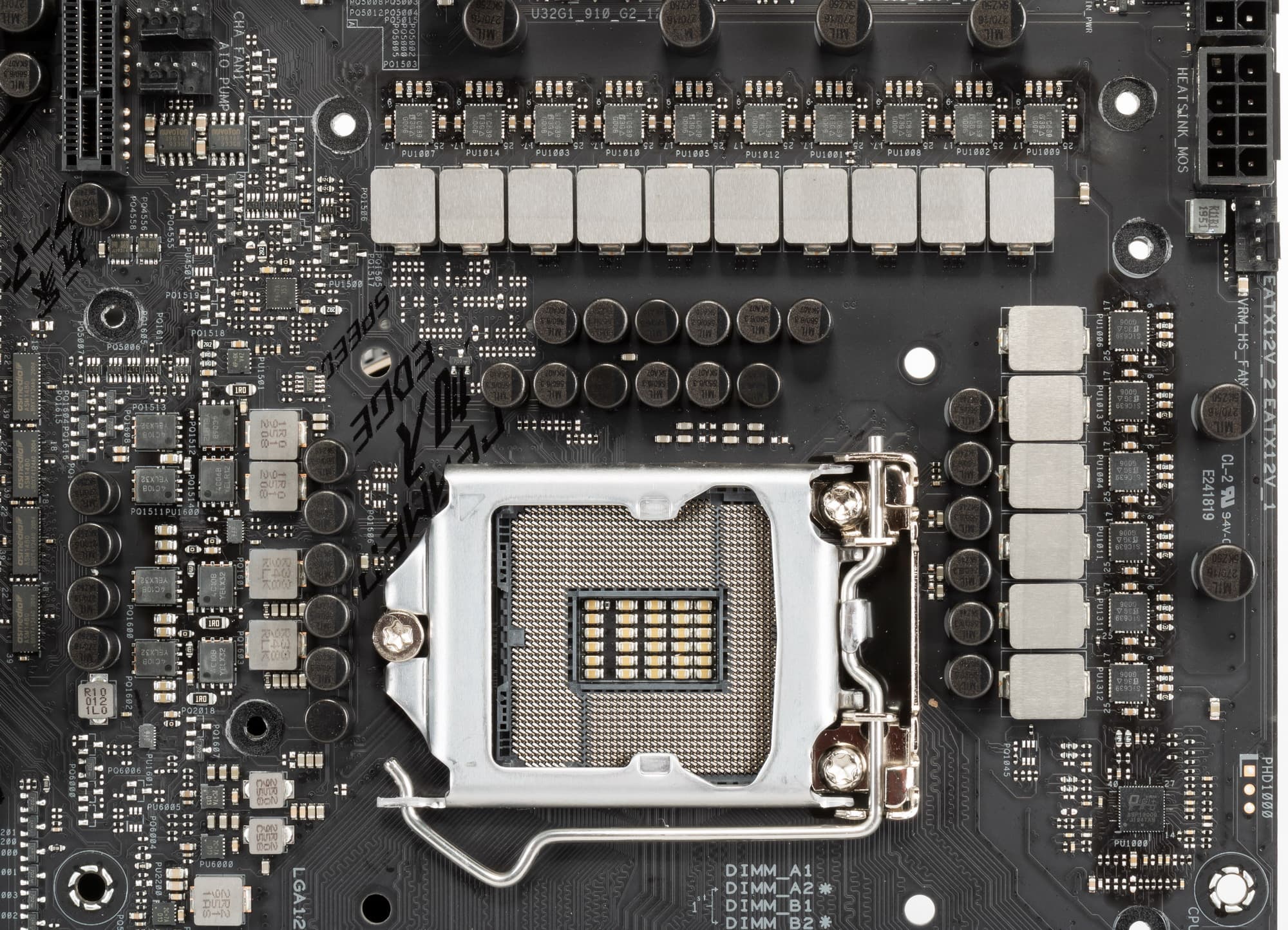 Еще раз надо напомнить, что ROG Strix Z490-E Gaming поддерживает процессоры Intel Core 10-го поколения, выполненные под разъем (сокет) LGA1200. Система крепления систем охлаждения для CPU точно такая же, как и для LGA1151 (прежние кулеры подойдут).
