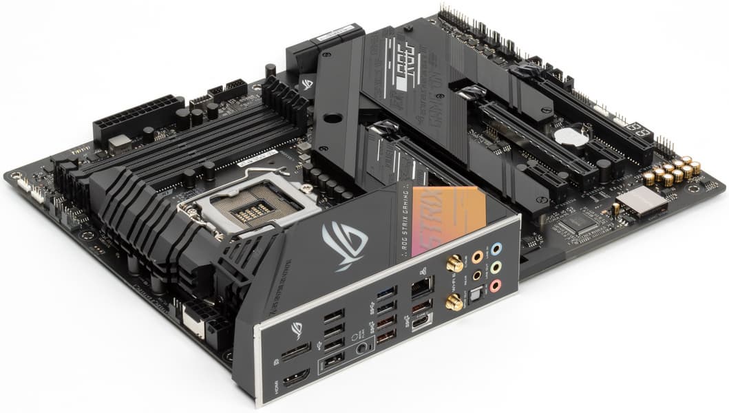 Итак, ROG Strix Z490-E Gaming. Понятно, что плата для геймеров, раз в ROG. Да и лишний раз суффикс Gaming это подчеркивает. Также понятно, что раз не Maximus, то никаких «фенечек» типа «нажми кнопку, и процессор вылетит из сокета» нет. А что осталось тогда? Вот и разберемся.