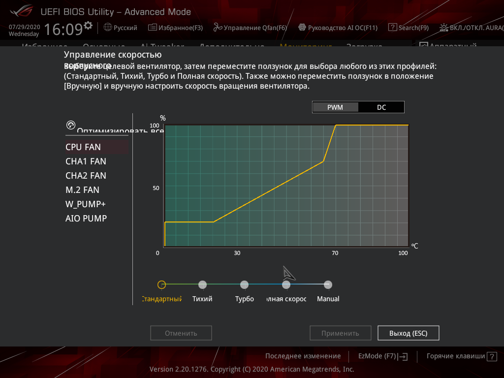 Через ПО или BIOS контролируется 6 гнезд для подключения воздушных вентиляторов или помп: они могут управляться как через ШИМ, так и банальным изменением напряжения/тока, для этих целей имеется контроллер APW8723 от Anpec Electronics.
