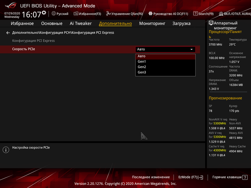 - Слот PCIe x16_1 имеет 16 линий (слот PCIe x16_2 отключен, всего одна видеокарта);