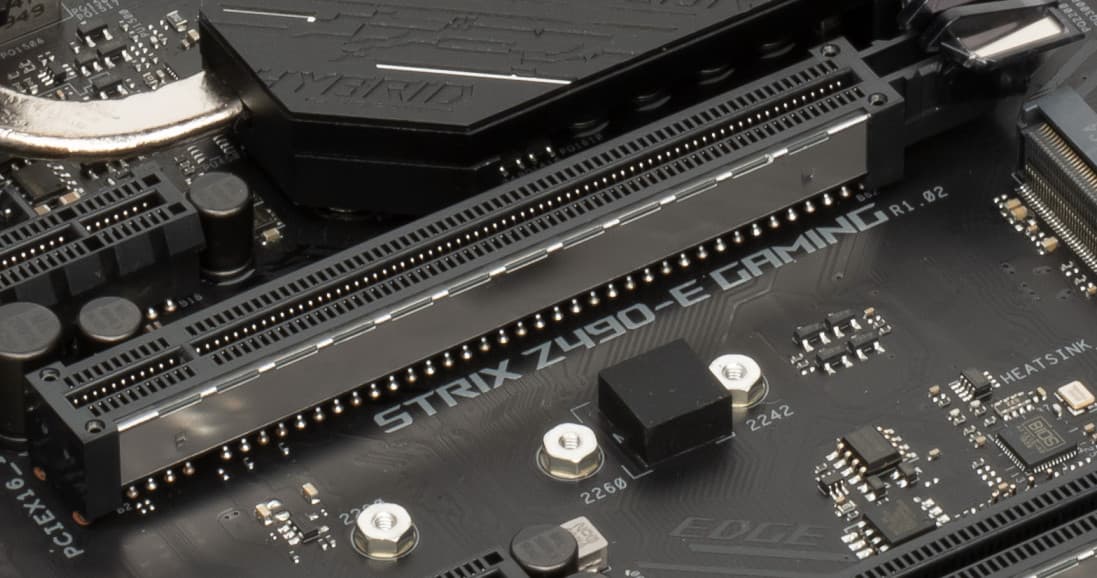 Всего на плате есть 6 слотов PCIe: три PCIe x16 (для видеокарт или других устройств) и три «коротких» PCIe x1. Если про первые два PCIe x16 я выше уже рассказал (они подключены к CPU), то PCIe x16_3 (шестой по общему счету) подключен к Z490 и имеет режим только х4.
