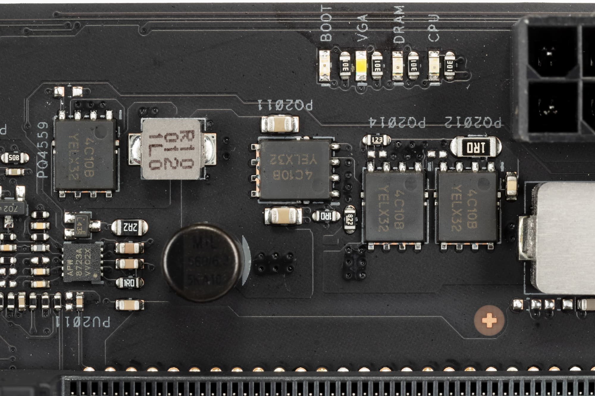 Каждый канал фазы имеет суперферритовую катушку и SIC639 MOSFET от Vishay, рассчитанный на токи до 50 А.