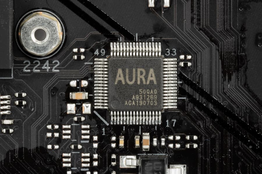 Контроль по синхронизации работы подсветки RGB возложен на чип Aura 50QА0 (неизвестно, как оригинально назывался чип и кто его производитель).