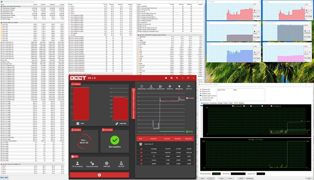 Запускаем все в режиме по умолчанию (MCE включен в авто-режиме). Затем нагружаем тестами от AIDA, и OCCT.