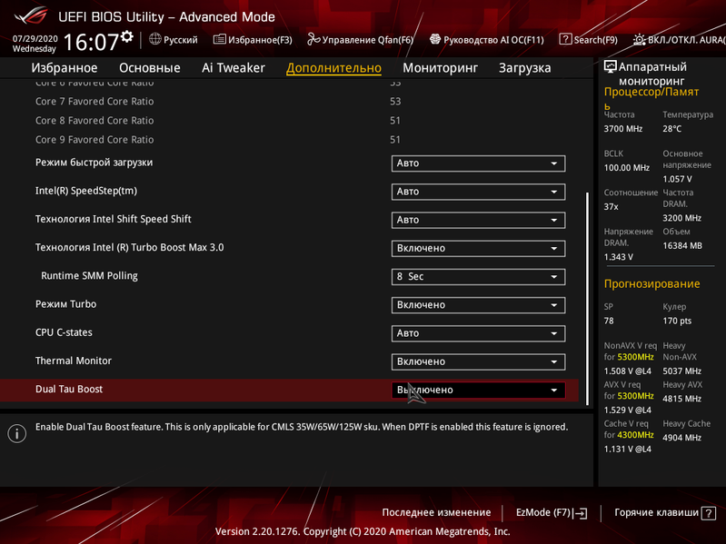 Включаем режим AI-Optimized (фирменный режим интеллектуального разгона в BIOS), получаем прибавку в 200 МГц, то есть 5,1 ГГц.