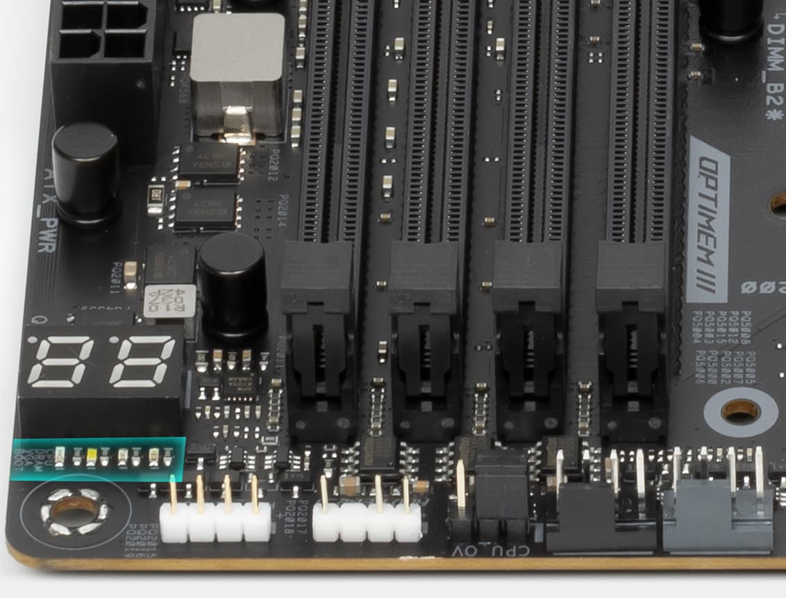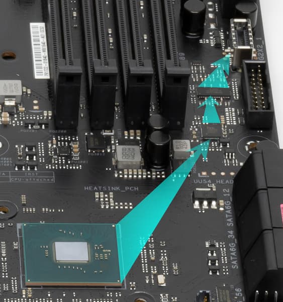 - Переключатель: или порты SATA_5/6 (2 линии) + слот PCIe x16_3 в режиме x2 (4 линии), или слот PCIe x16_3 в режиме x4 (4 линии): максимум 4 линии;