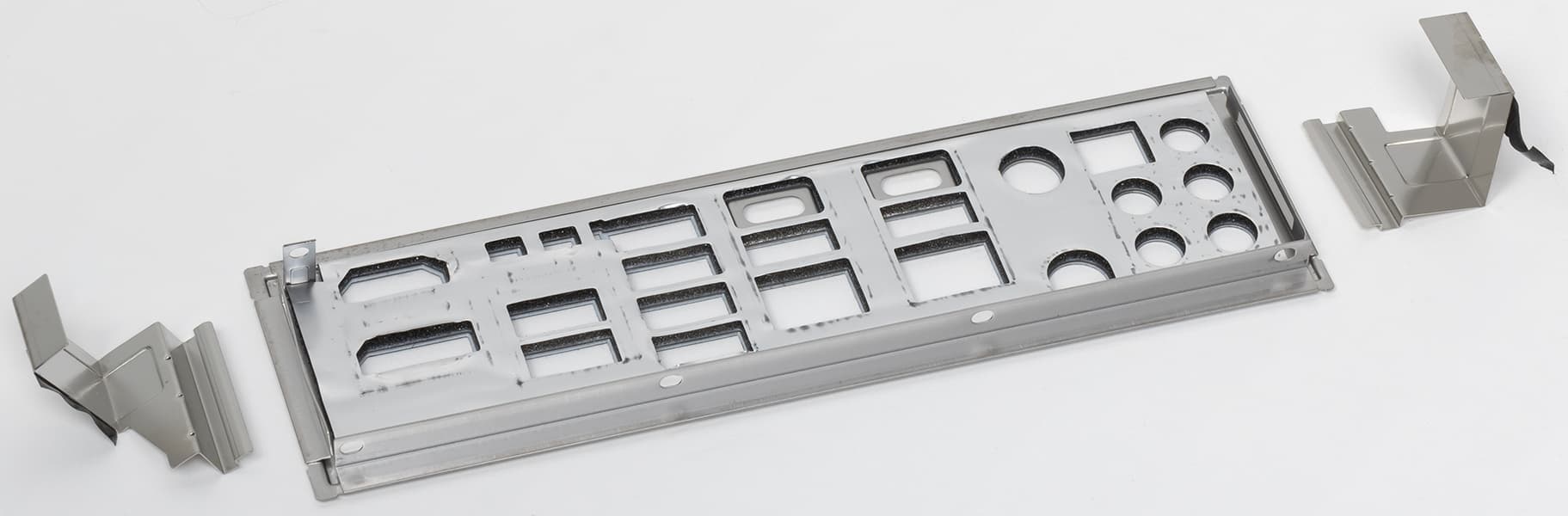 Заглушка, традиционно надеваемая на заднюю панель, в данном случае уже надета, и изнутри экранирована для снижения электромагнитных помех.