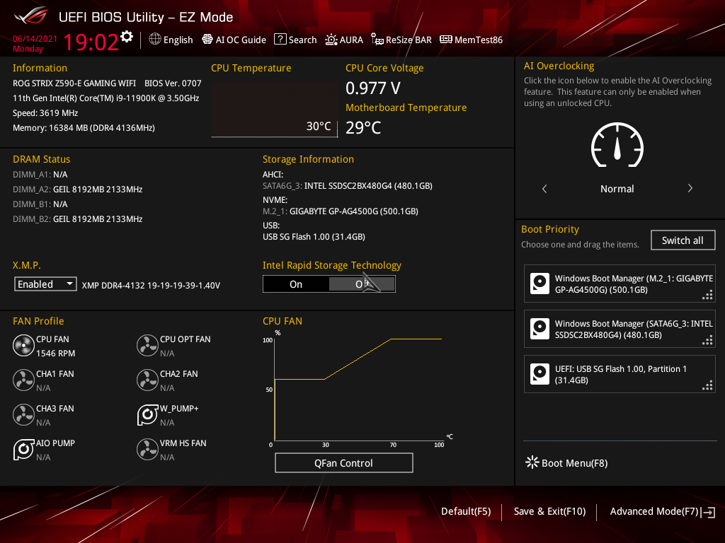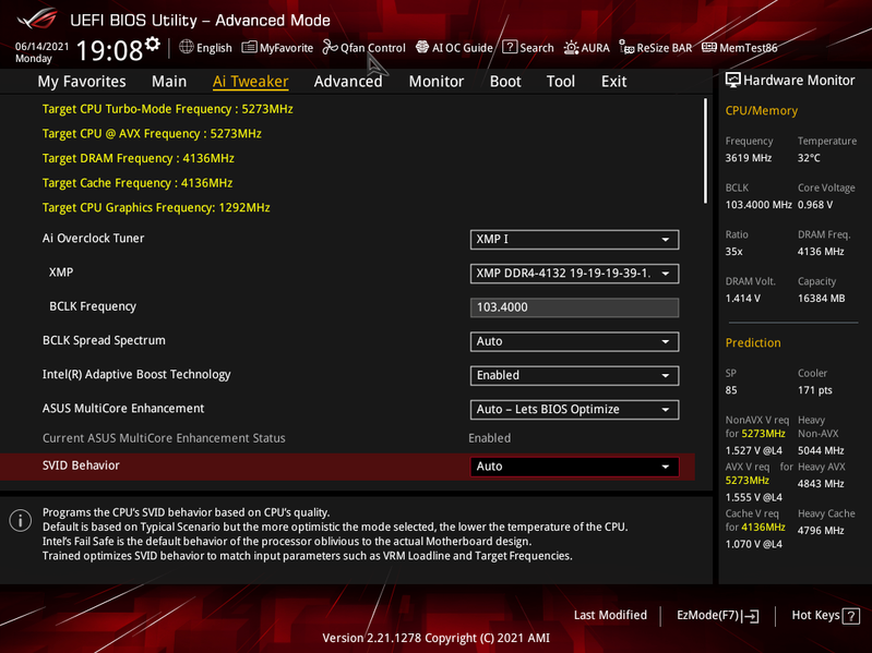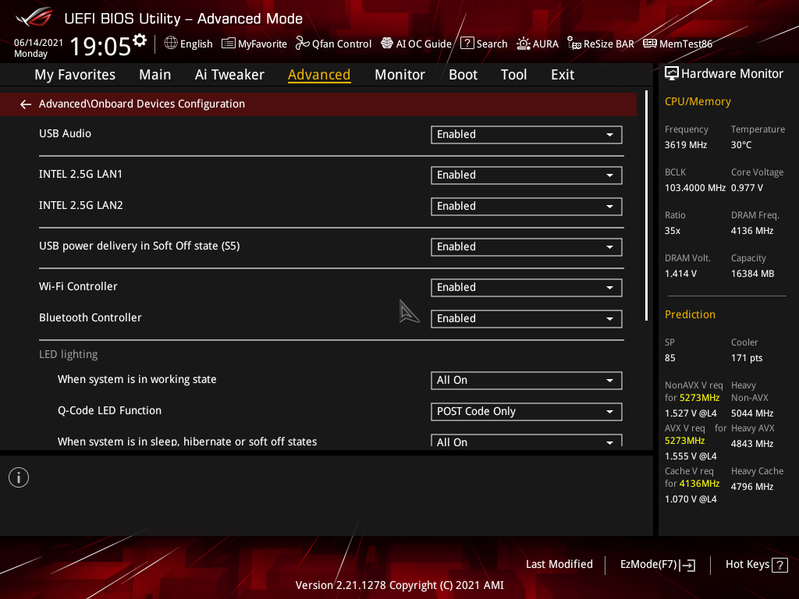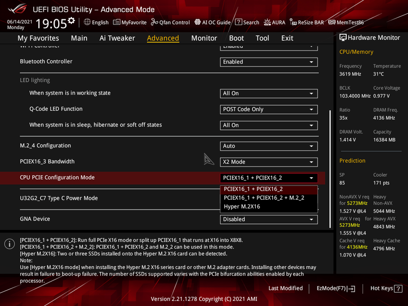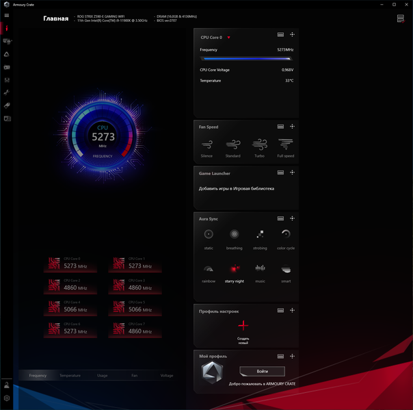 Несмотря на геймерское предназначение, Asus ROG Strix Z590-E Gaming WiFi предлагает широкие возможности для любителей разгона в виде множества настроек в BIOS Setup и фирменных утилитах — лишь бы кулер справлялся. А вот MCE надо выключать, дабы избежать перегрева топовых CPU.