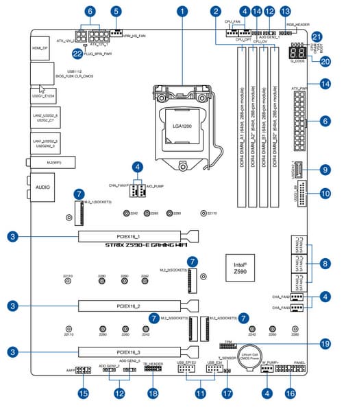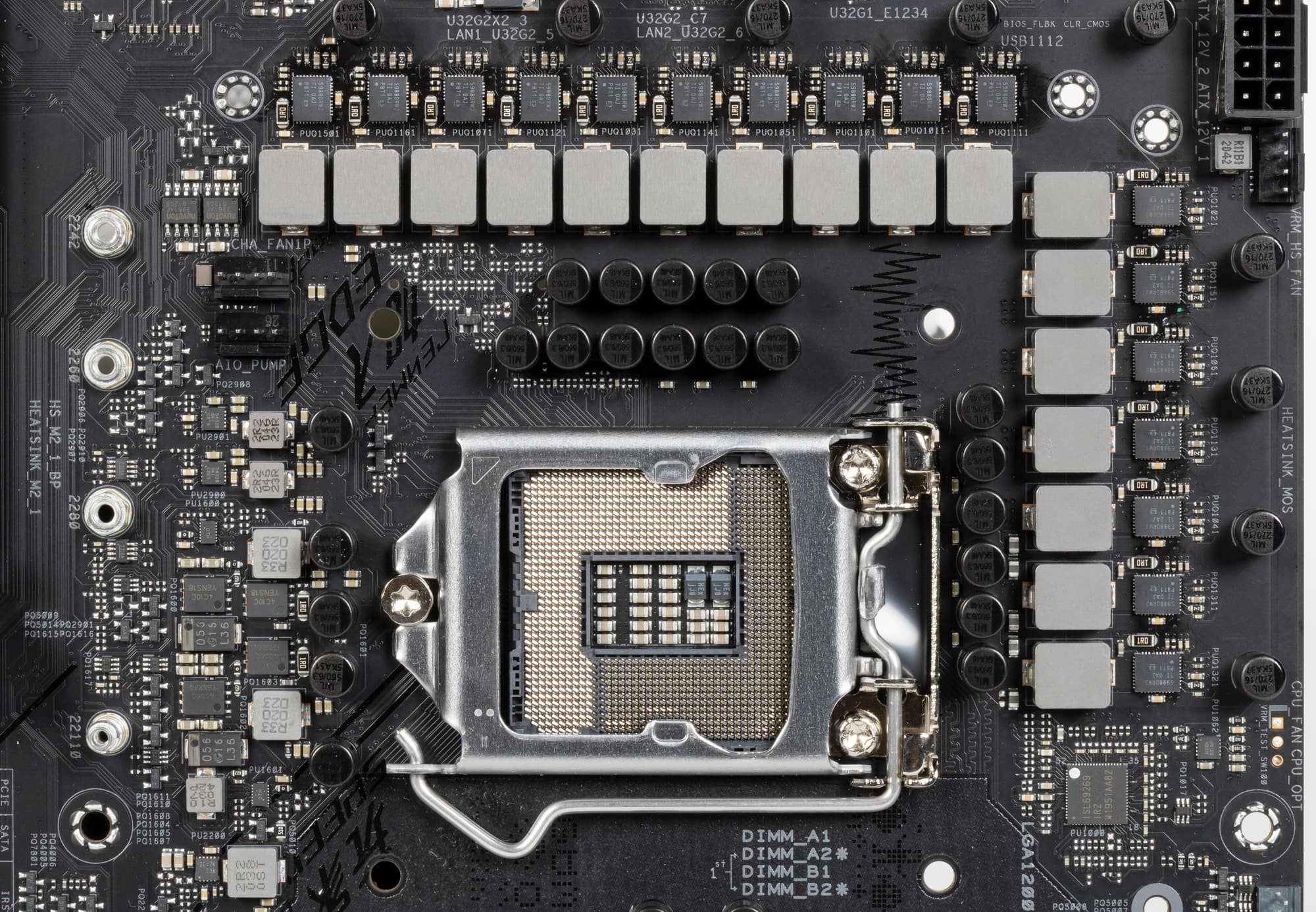 Еще раз надо напомнить, что Asus ROG Strix Z590-E Gaming WiFi поддерживает процессоры Intel Core 10-го и 11-го поколения, выполненные под разъем (сокет) LGA1200. Система крепления систем охлаждения для CPU точно такая же, как и для LGA1151.