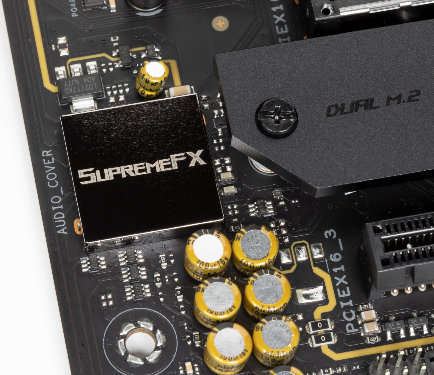 В традициях Asus накрывать микросхему кодека металлическим колпачком с собственным названием аудиоподсистемы SupremeFX.