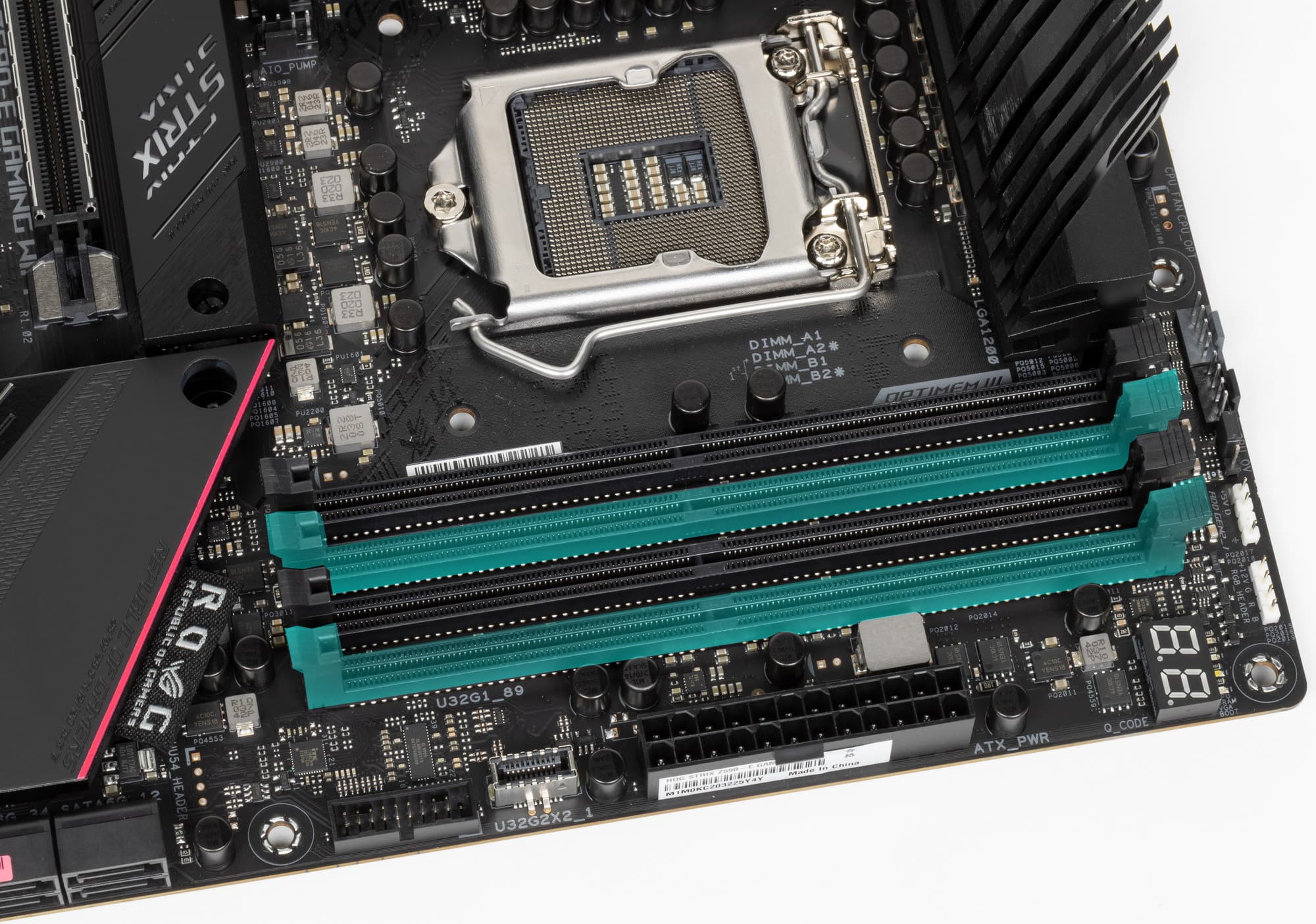 Для установки модулей памяти на плате Asus имеется четыре DIMM-слота (для работы памяти в Dual Channel в случае использования всего 2 модулей их следует устанавливать в А2 и B2. Плата поддерживает небуферизованную память DDR4 (non-EСС), а максимальный объем памяти составляет 128 ГБ (при использовании UDIMM последнего поколения по 32 ГБ). Разумеется, поддерживаются профили XMP.