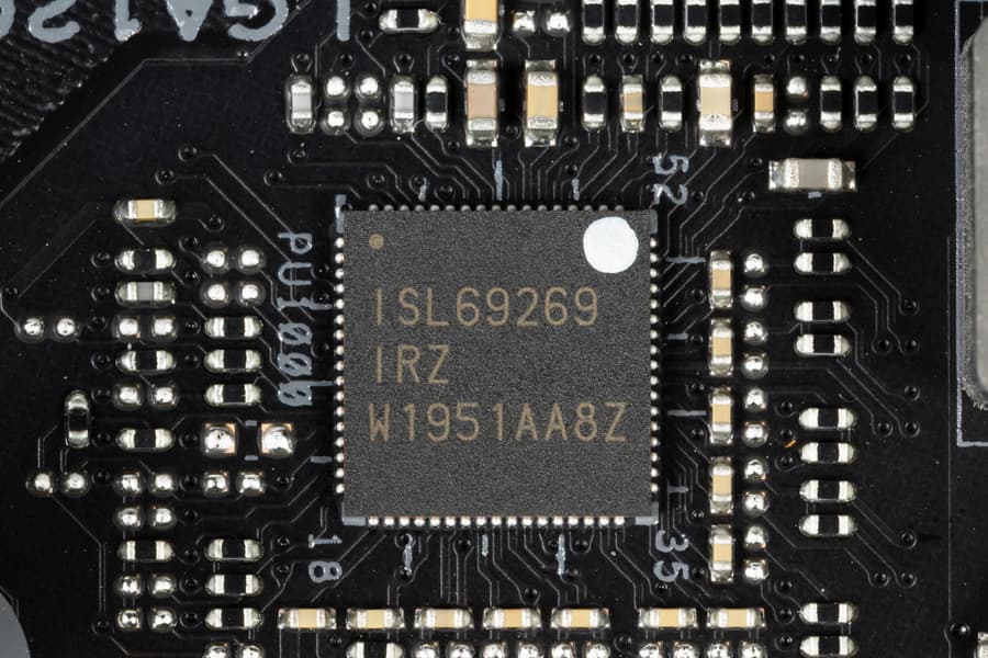 Управляет схемой ШИМ-контроллер ISL69269 от Renesas (ex Intersil), рассчитанный максимум на 8-12 фаз (зависит от модификации).