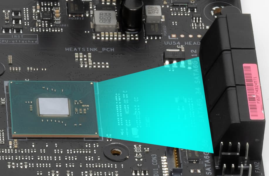 Процессоры Intel Core 11-го поколения (совместимые с сокетом LGA1200 и поддерживаемые Z590) имеют 20 линий ввода-вывода PCIe 4.0, не имеют USB и SATA портов. При этом взаимодействие с Z590 идет по особому каналу Digital Media Interface 3.0 (DMI 3.0), который в Z590 ускорен в 2 раза. Все PCIe линии процессора идут на слоты расширения PCIe и порт М.2. Serial Peripheral Interface (SPI) используется для взаимодействия с системой UEFI/BIOS, а шина Low Pin Count (LPC) — для связи с устройствами ввода/вывода, не требующими высокой пропускной способности (контроллерами вентиляторов, TPM, старой периферии). Процессоры Intel Core 10-го поколения (совместимые с сокетом LGA1200 и поддерживаемые Z490/590) имеют 16 линий ввода-вывода PCIe 3.0, которые идут только на слоты расширения PCIe.