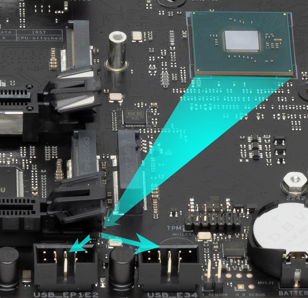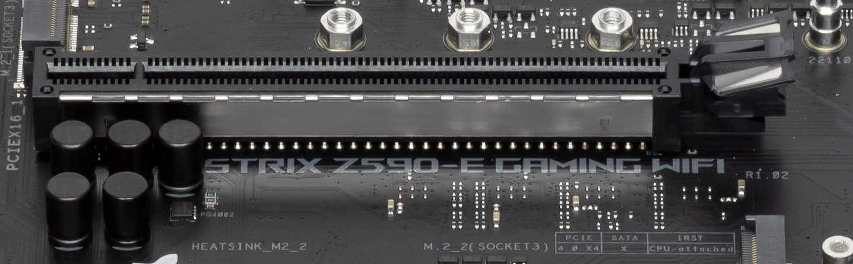 А средний M2_2, как и М2_1, подключен к процессору, и будет работать как с 10-м, так и с 11-м поколением, разница лишь в версии PCIe. Однако я выше уже писал, что М2_2 делит ресурсы со слотами PCIe x16_1/2, это надо иметь в виду. Опять же верхний M2_1 не делит ресурсы ни с чем, но функционирует только вместе с процессорами 11ххх.