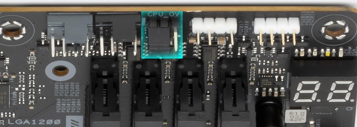 Всего на плате есть 3 слота: PCIe x16 (длинные, для видеокарт или других устройств) . Если про первые два PCIe x16 я выше уже рассказал (они подключены к CPU), то PCIe x16_3 подключен к Z590, и он рассчитан на режим только х4, однако делит ресурсы с портами SATA_5/6: если занять SATA_5 или 6, то слот PCIe x16_3 будет работать в режиме х2.