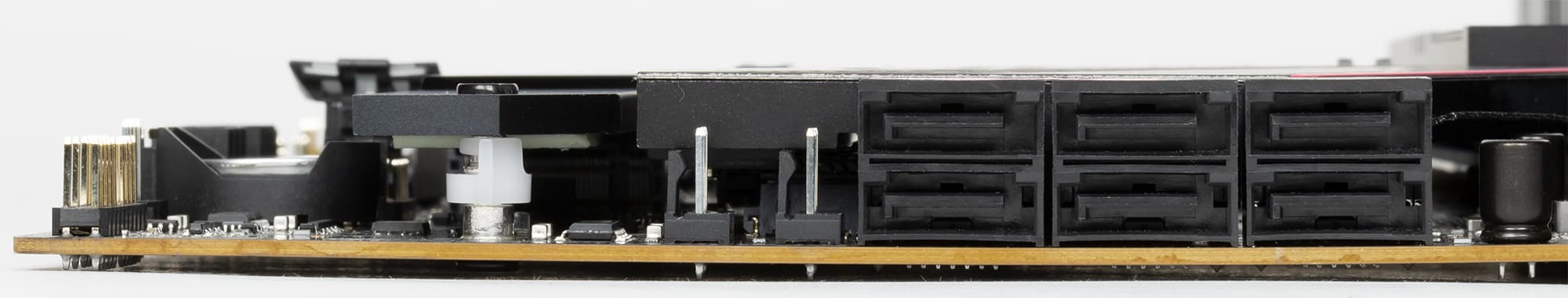 2 порта SATA_5/6 делят ресурсы со слотом PCIe x16_3, выше я уже рассказал про это. А порт SATA_2 делит ресурсы с одним из М.2, о чем пойдет речь ниже.