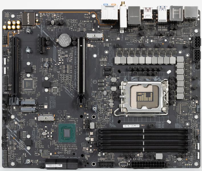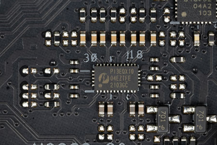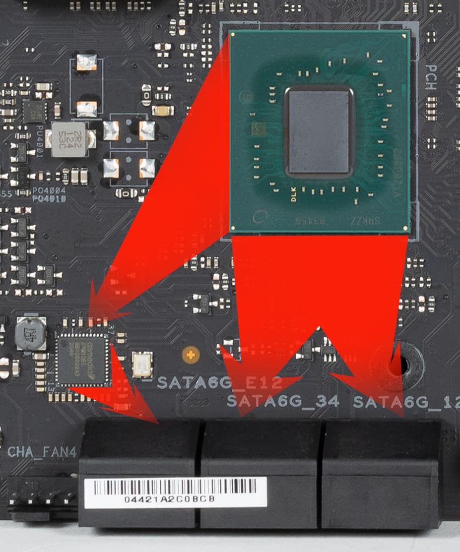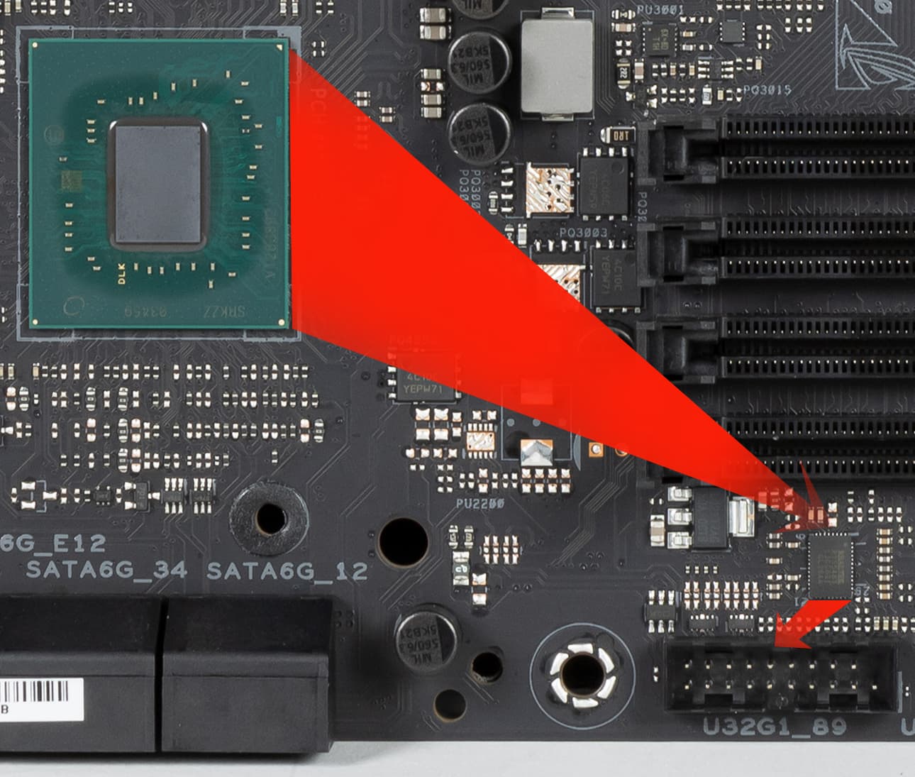 А два порта SATA 5,6 (промаркированные как E1, E2) реализованы через хаб ASM1061 от ASMedia (на него ушла 1 линия PCIe от Z690).
