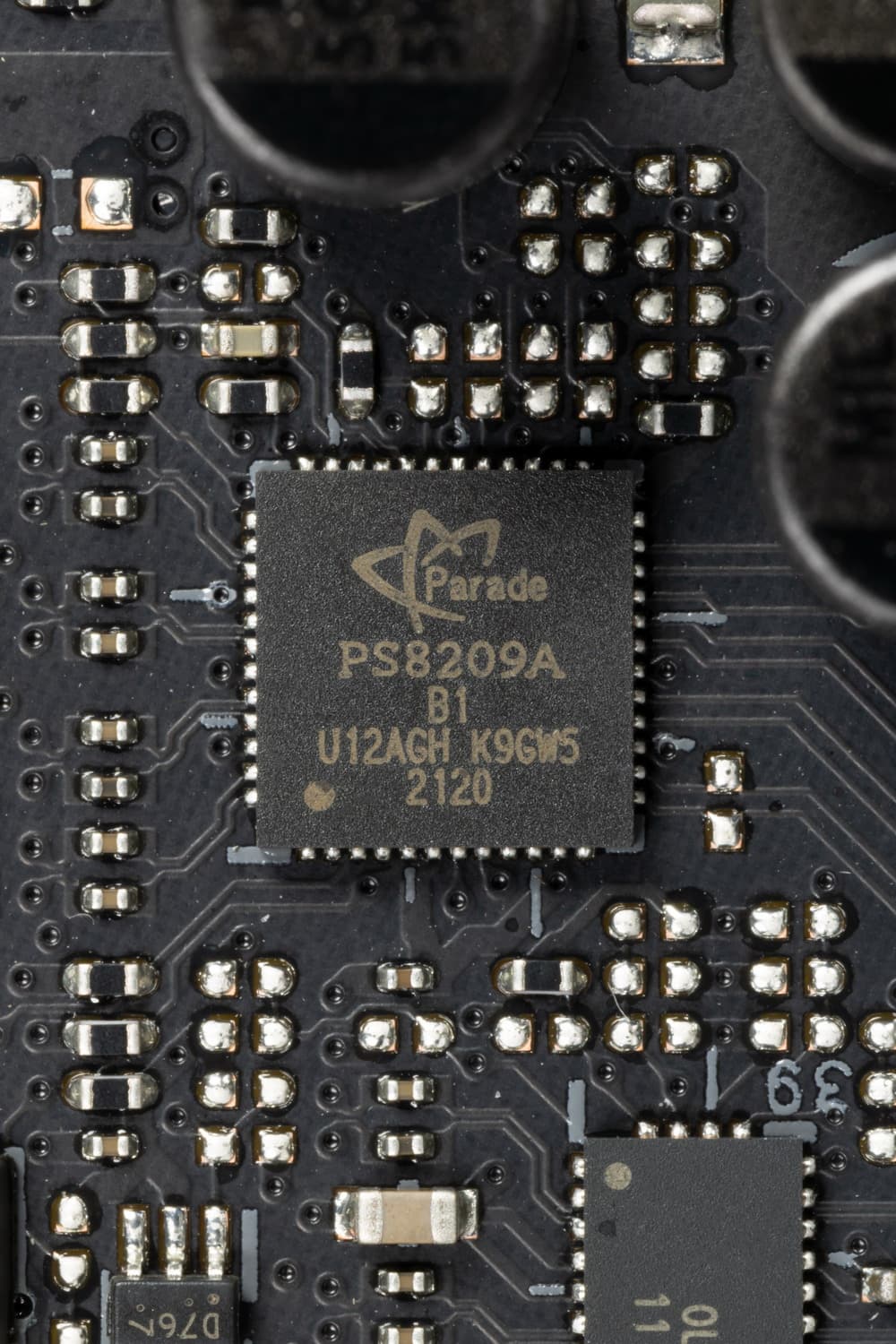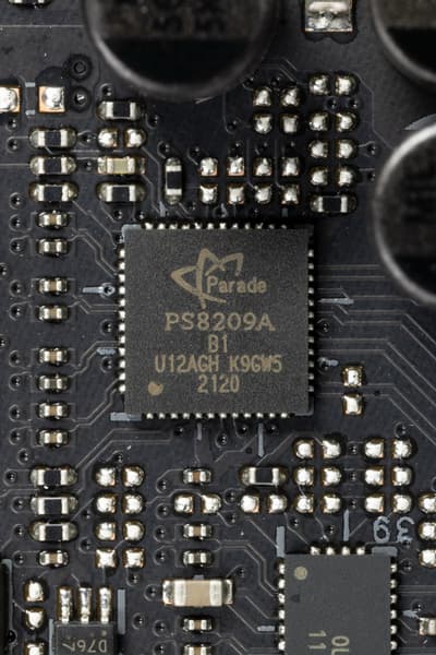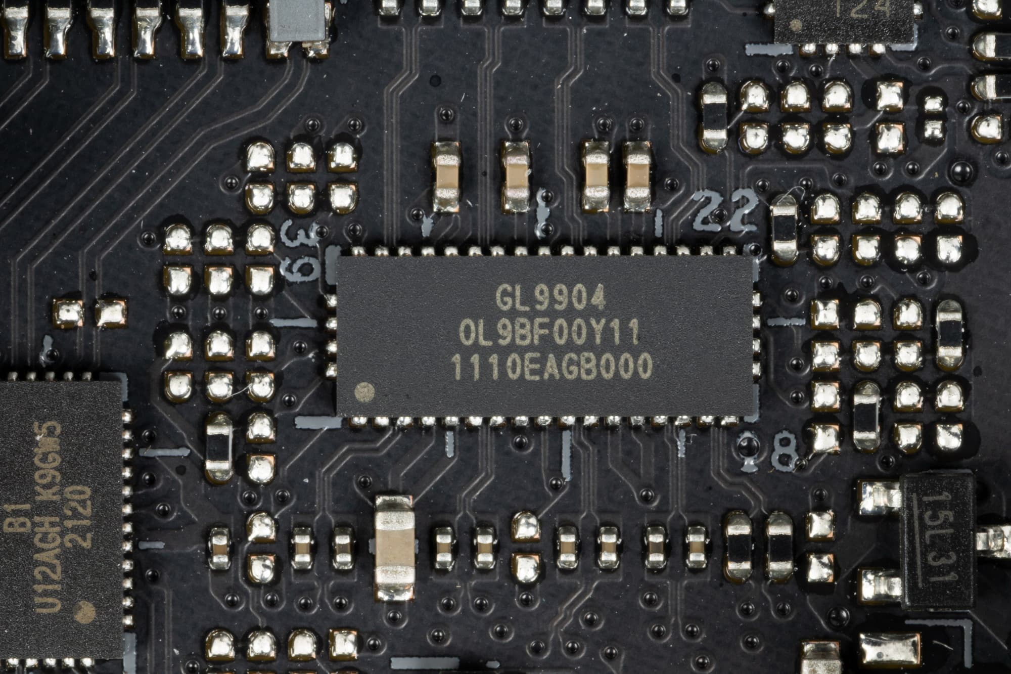 - 2 порта USB 3.2 Gen2x2: первый реализован с помощью двух хабов ITE IT8853 и Realtek RTS5463 (на них потрачены 2 линии USB 2.0) и представлен на задней панели портом Type-C, второй реализован силами Z690 и представлен внутренним портом Type-C (для подключения к соответствующему разъему на передней панели корпуса);