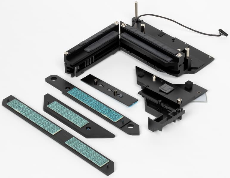 Все M.2 слоты имеют радиаторы. M2_1 и М2_2 обладают отдельными радиаторами, когда как остальные два нижних слота M2_3 и М2_4 имеют общий радиатор.