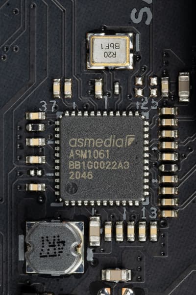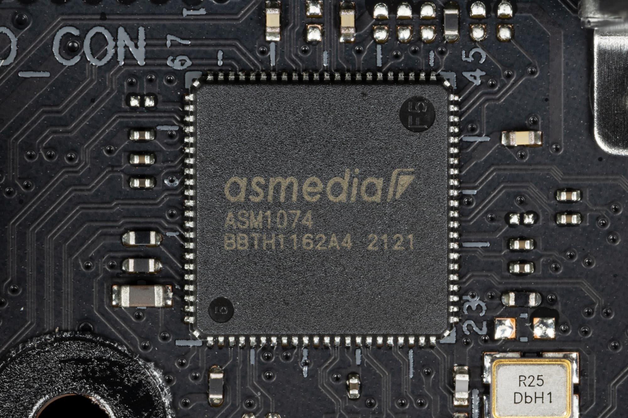 - ASMedia ASM1074 (USB 3.2 Gen1 хаб) (1 линия PCIe 3.0);