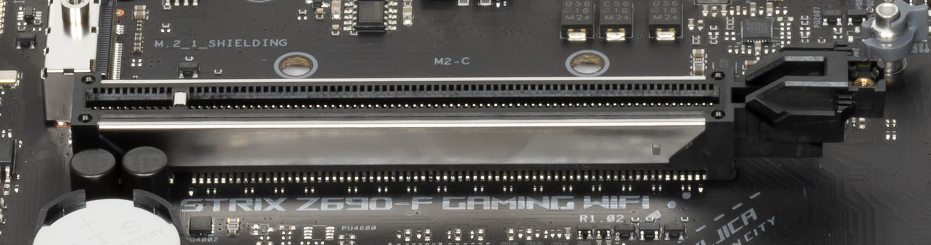 Второй, третий и четвертый слоты M.2 (M2_2, M2_3, М2_4) получают данные от чипсета Z690, а первый — от CPU (PCIe 4.0). При этом только М2_4 (PCIe 4.0) поддерживает модули с любым интерфейсом, а все остальные работают с модулями только с PCIe интерфейсом.
