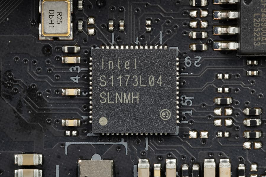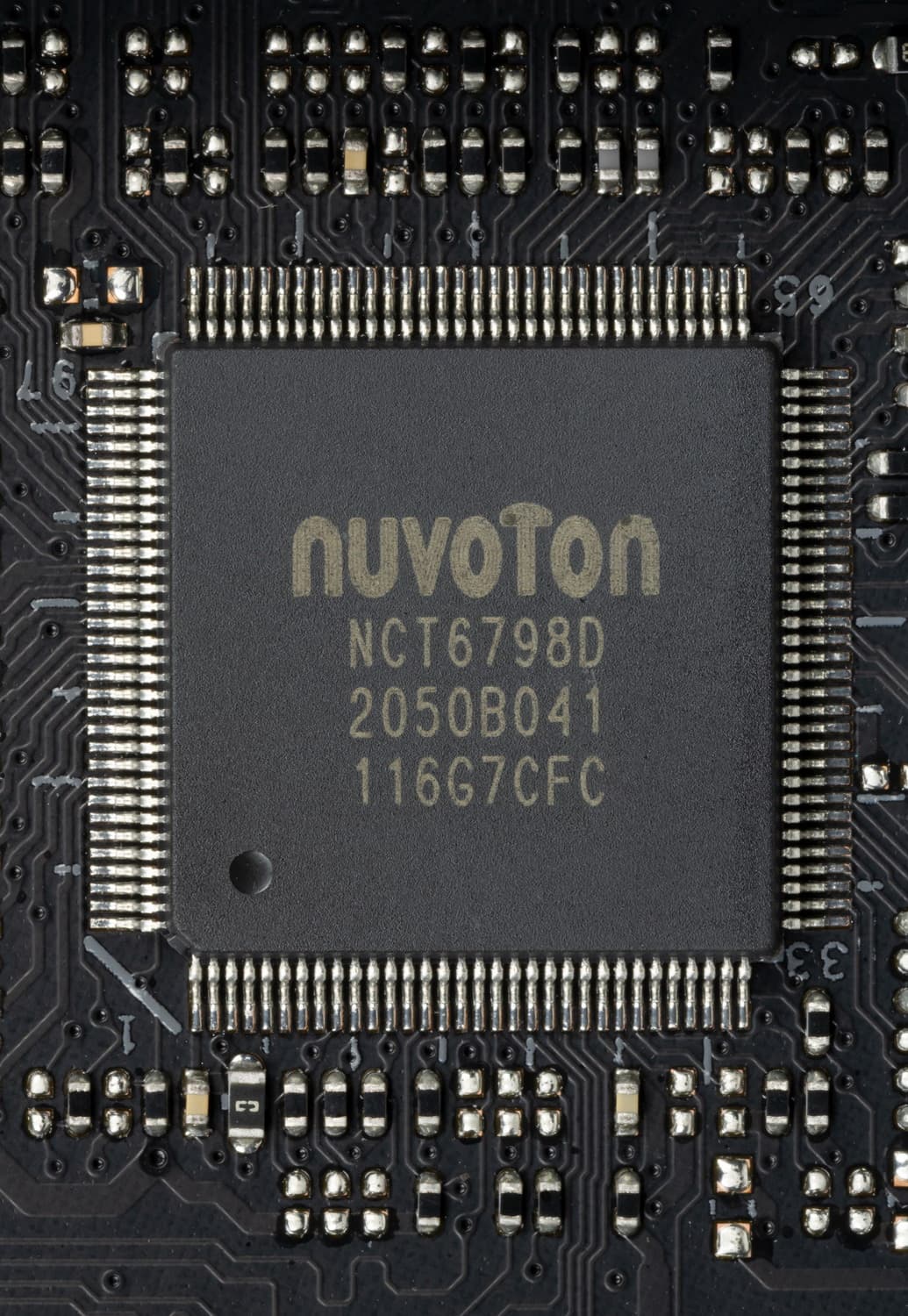 Материнская плата оснащена средствами связи хорошо. Имеется скоростной Ethernet-контроллер Intel I225-V, способный работать по стандарту 2,5 Гбит/с.