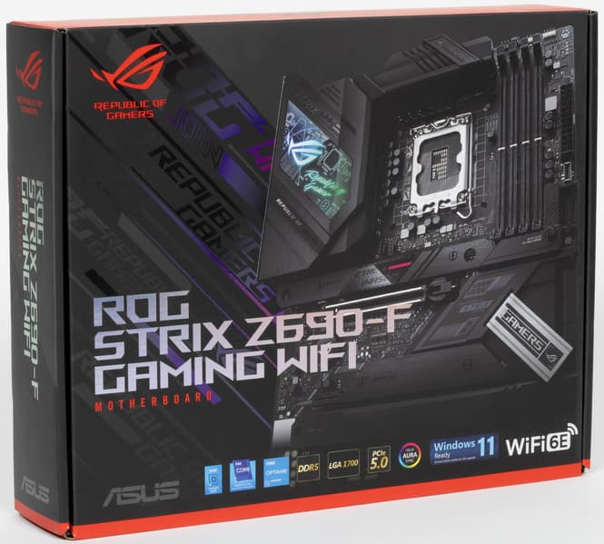 У нас сегодня на рассмотрении материнская плата, относящаяся к ROG Strix, то есть игровой и передовой продукт, но не флагман. Впрочем, сейчас по ценникам на материнские платы подчас тяжело определить — где же «середняки», куда они подевались, почему все так дорого. Но опять же, это не наш вопрос. Переходим к изучению Asus ROG Strix Z690-F Gaming WiFi.